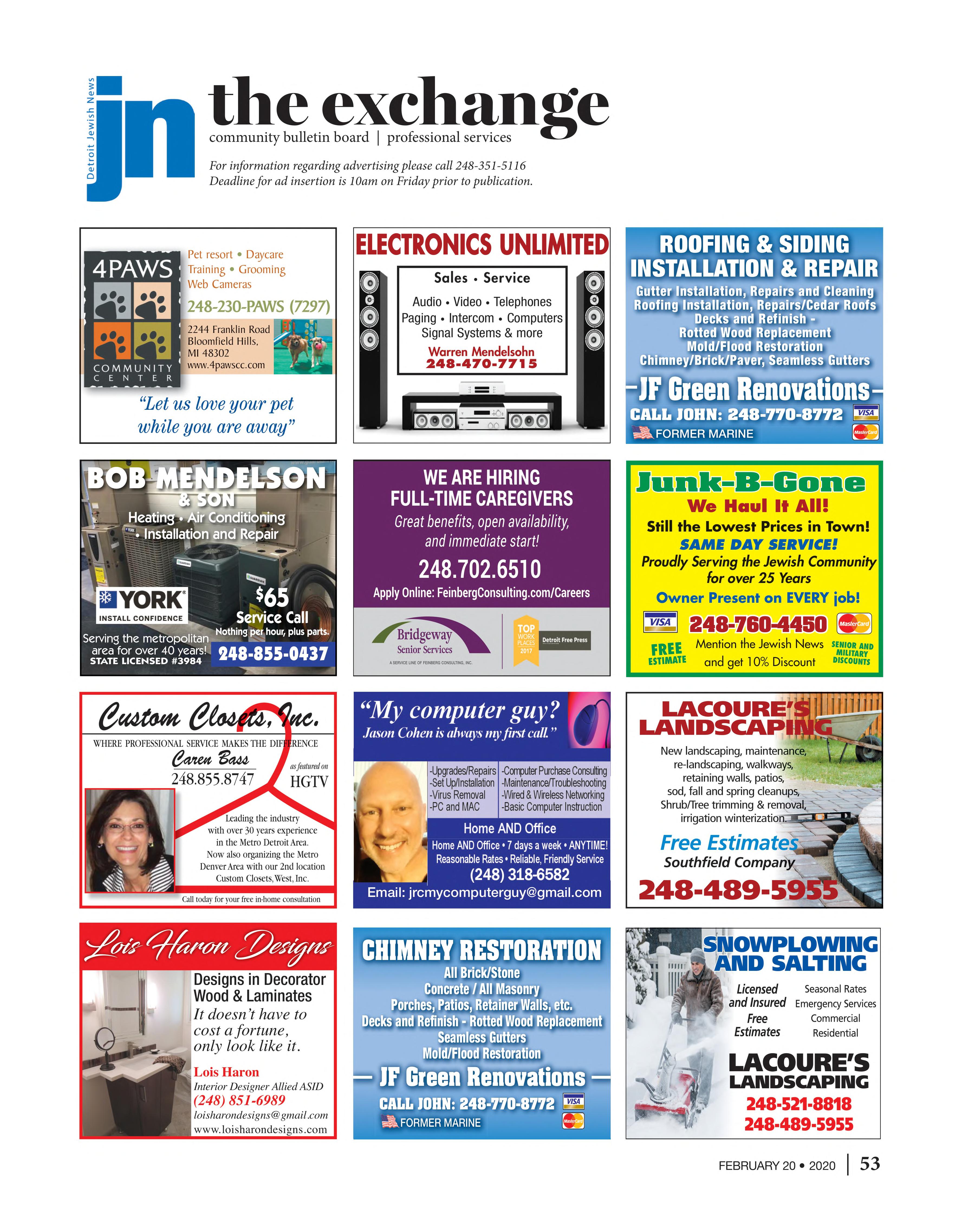 Deadline for ad insertion is 10am on Friday prior to publication.
