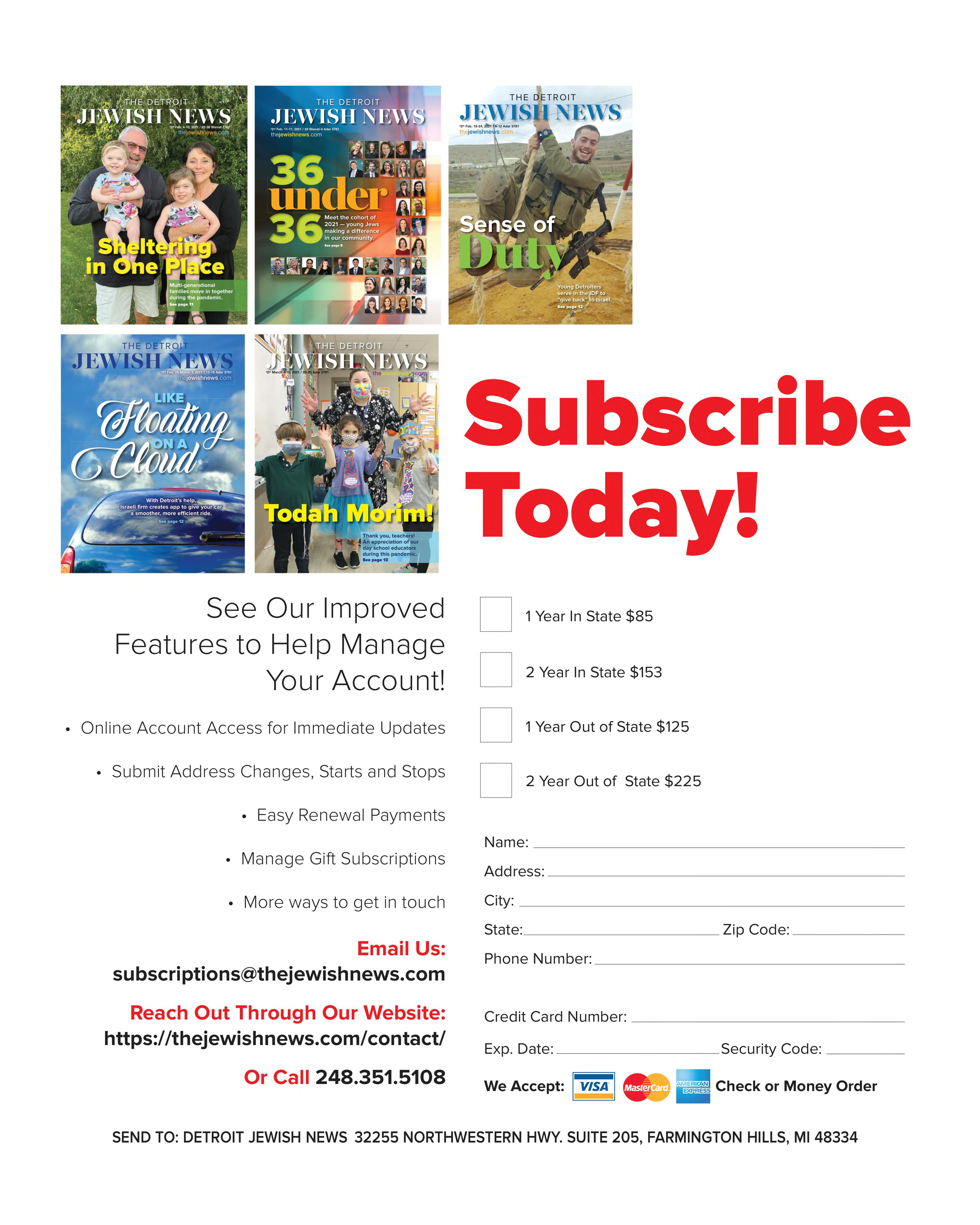 SEND TO: DETROIT JEWISH NEWS 32255 NORTHWESTERN HWY. SUITE 205, FARMINGTON HILLS, MI 48334
