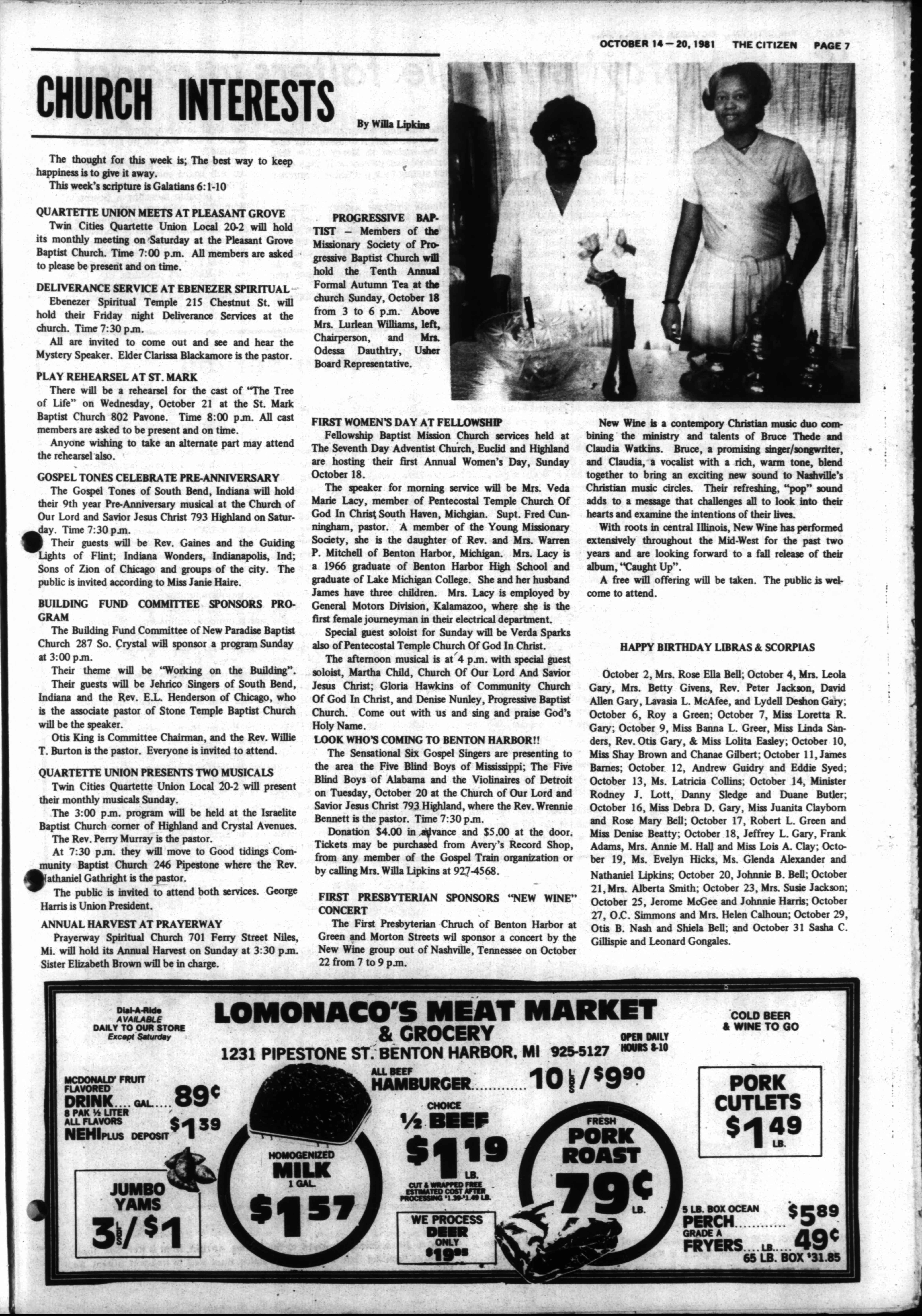 graduate of Lake ichigan College. She and her bUJl)an<l