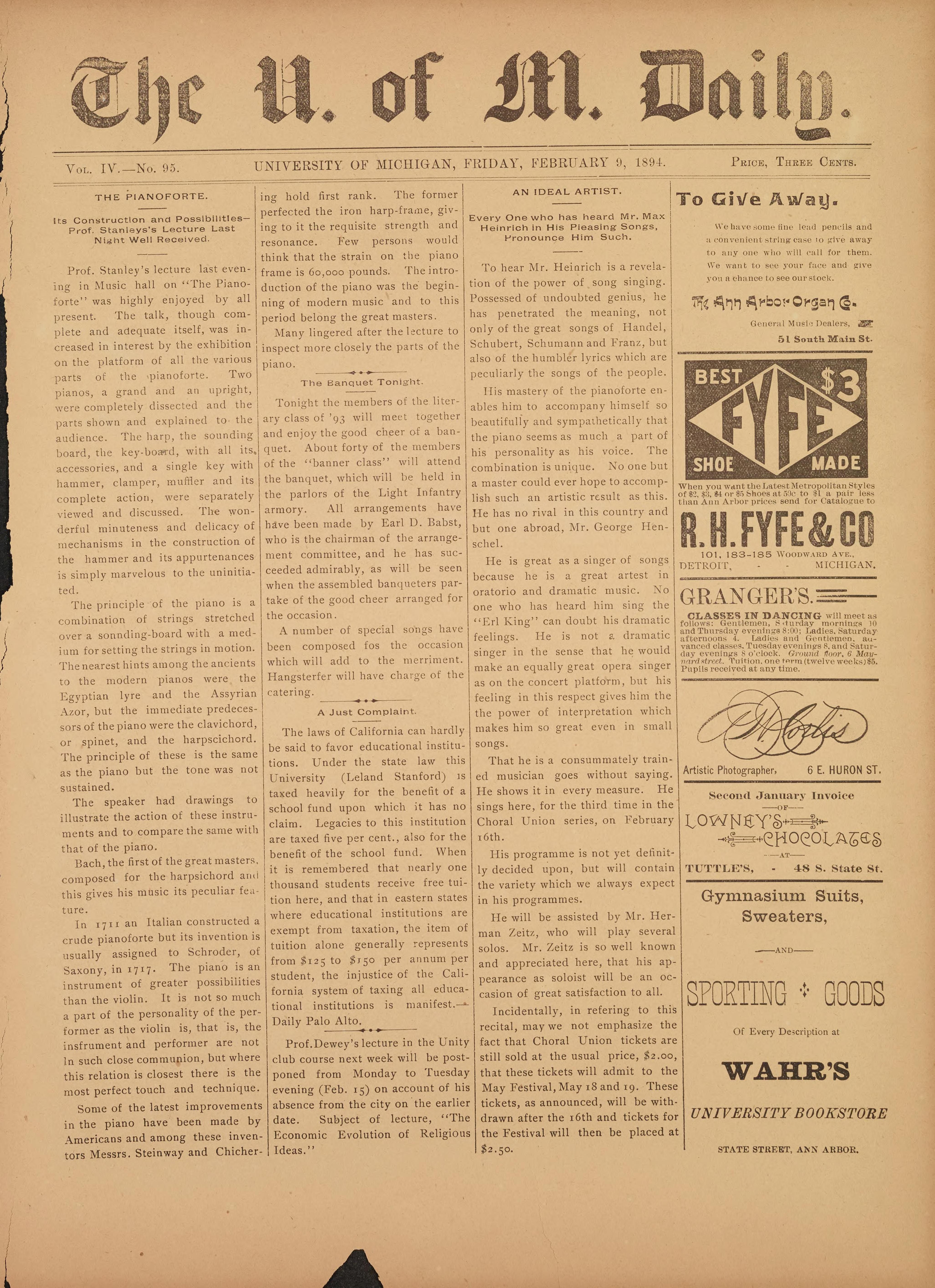Vat,.TV-No. 95. UNIVERSITY OF MIG:HIGAN, FRIDAY, FEBRUARY 9, 18991.