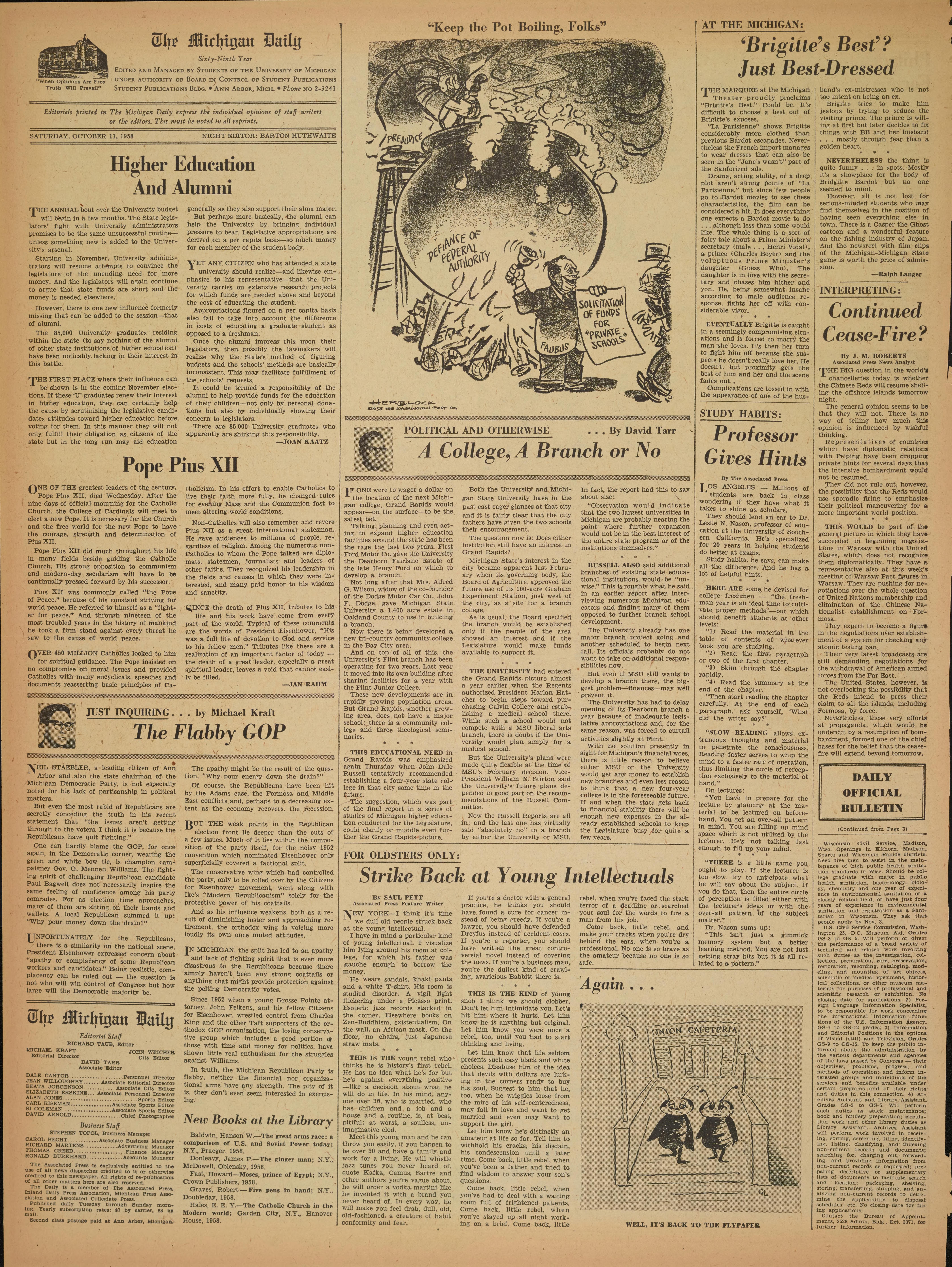SATURDAY, OCTOBER 11, 1958 NIGHT EDITOR: BARTON HUTHWAITE