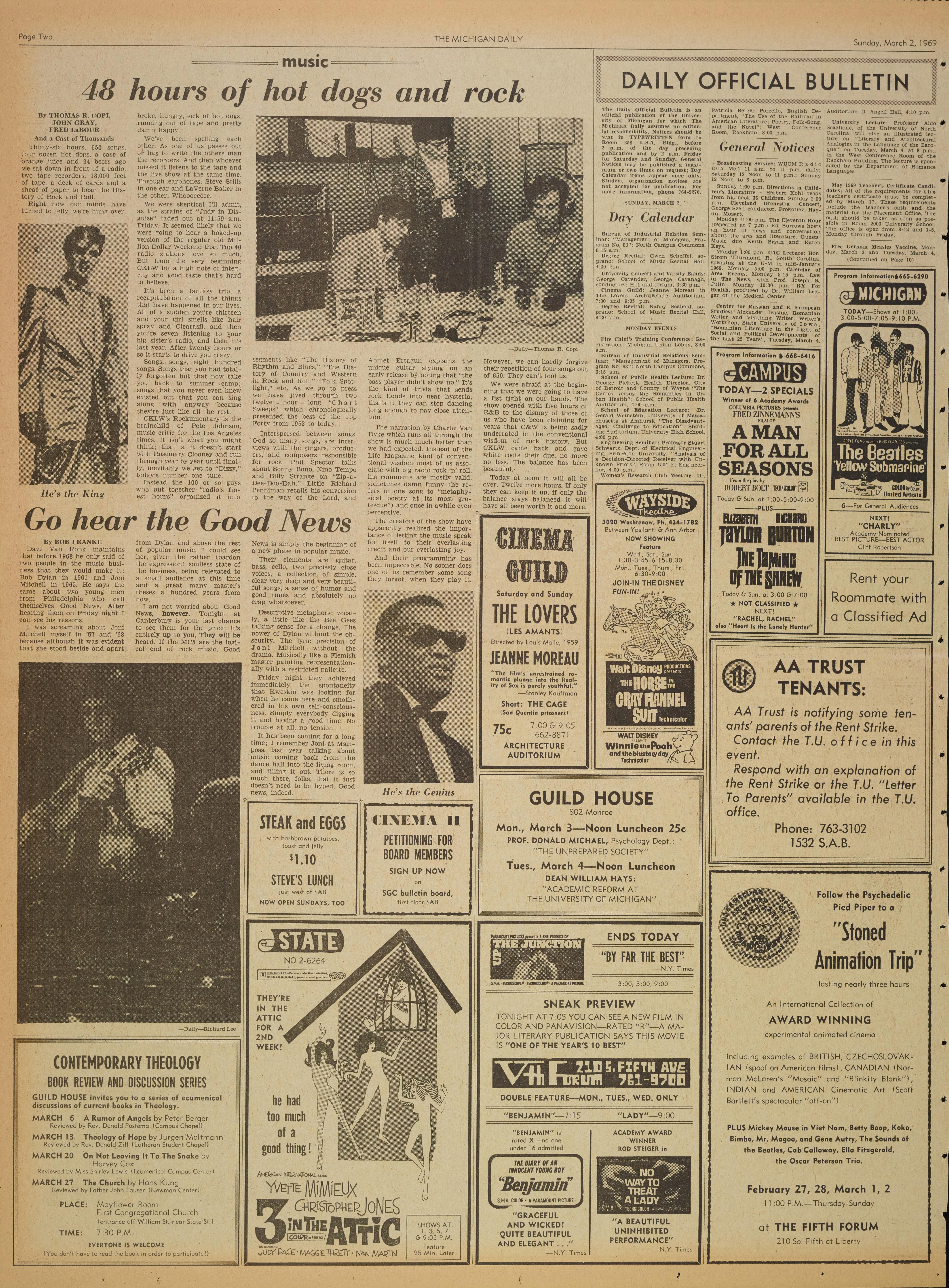 Two THE MICHIGAN DALY Sunday, March 2, 1969