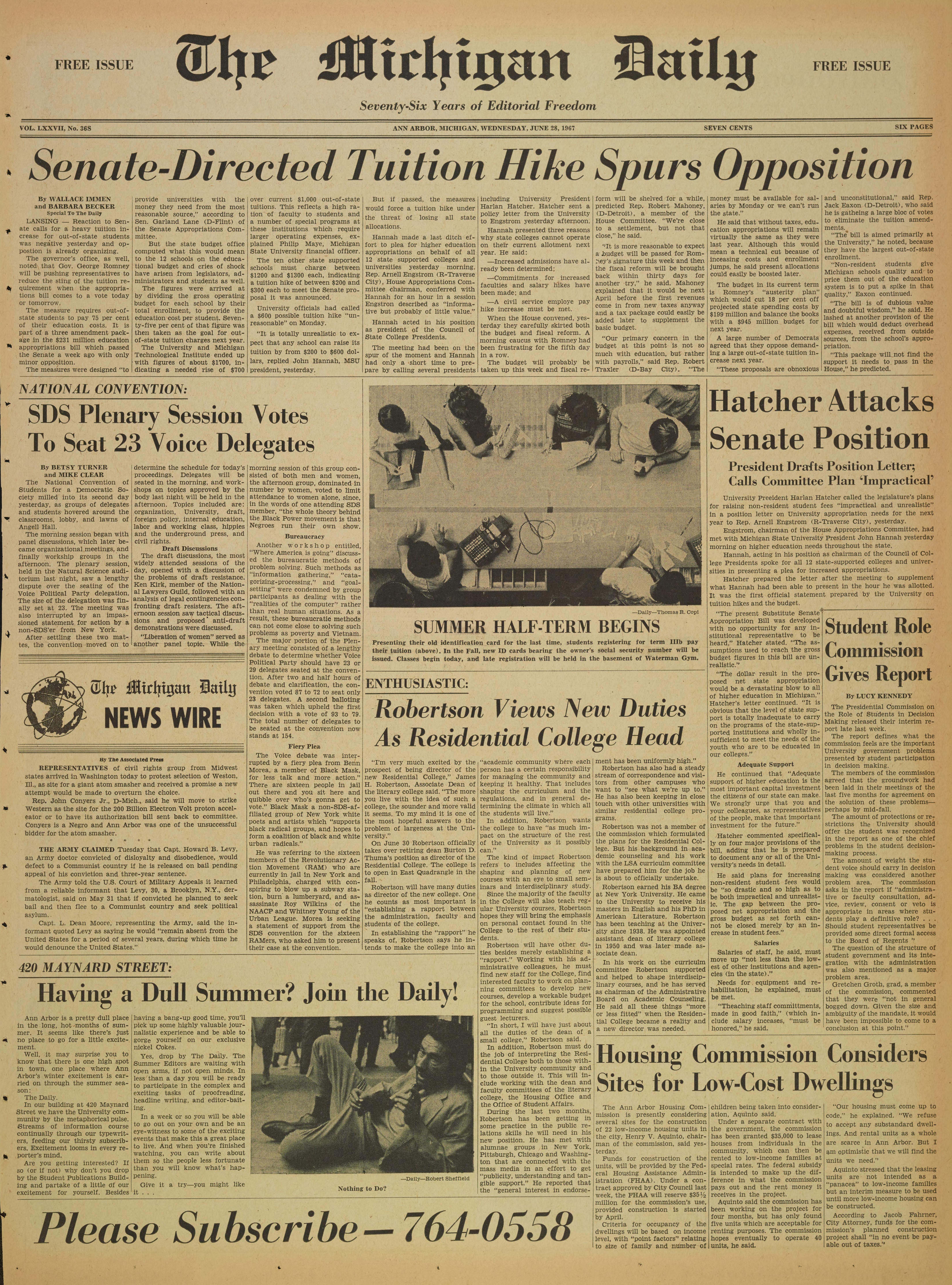 VOL. LXXVII, No. 36S ANN ARBOR, MICHIGAN, WEDNESDAY, JUNE 28, 1967 SEVEN CENTS