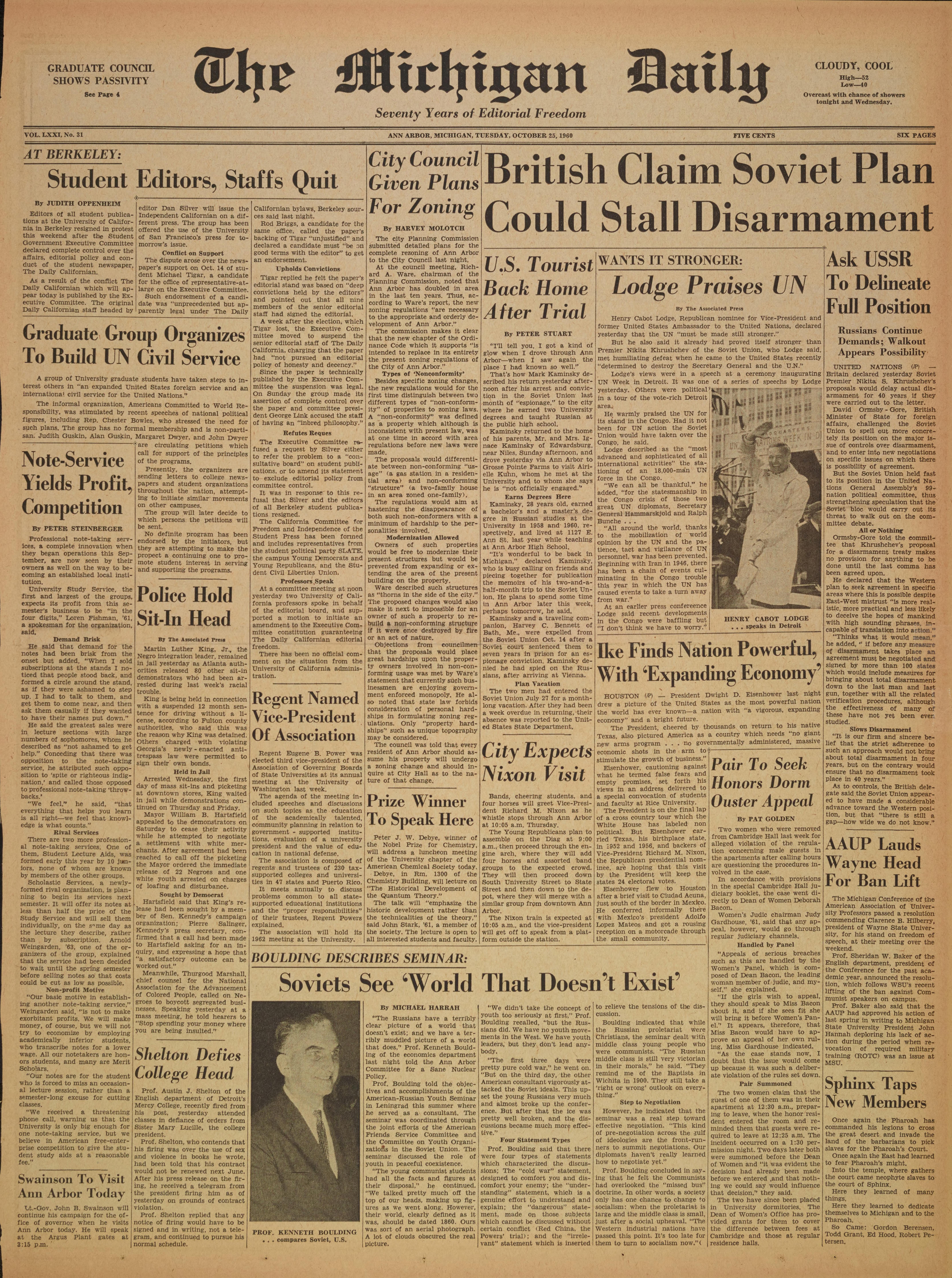 ANN ARBOR, MICHIGAN, TUESDAY, OCTOBER 25, 1960