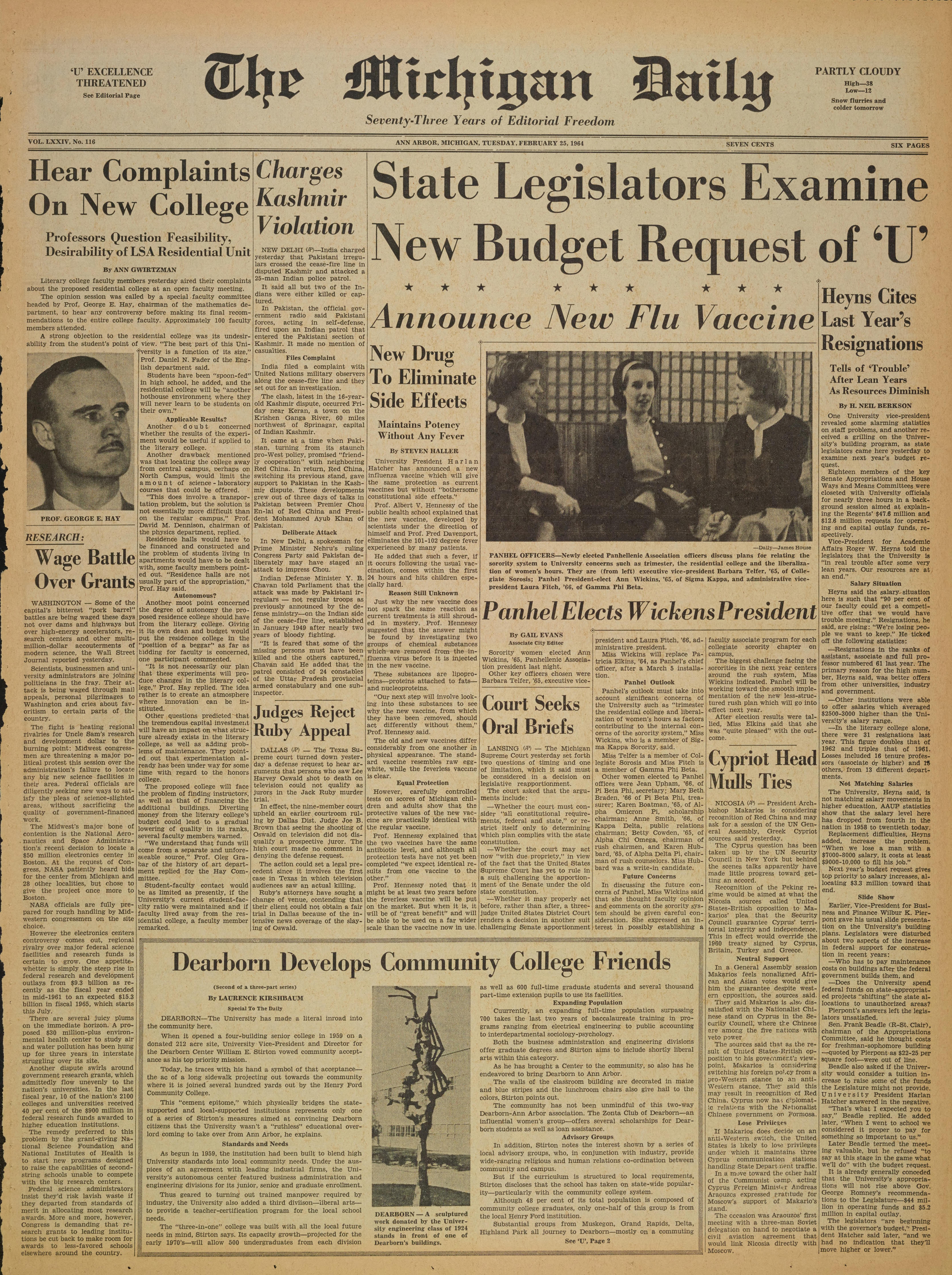 VOL. LXXIV, No. 116 ANN ARBOR, MICHIGAN, TUESDAY, FEBRUARY 25, 1964 SEVEN CENTS