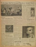 MCRAE OVER RIGHT TACKLE FOR TWO YARDS (MAYBE)-On the Wolverines favorite play, left half over right tackle, Bennie McRae attempts to slithtr through