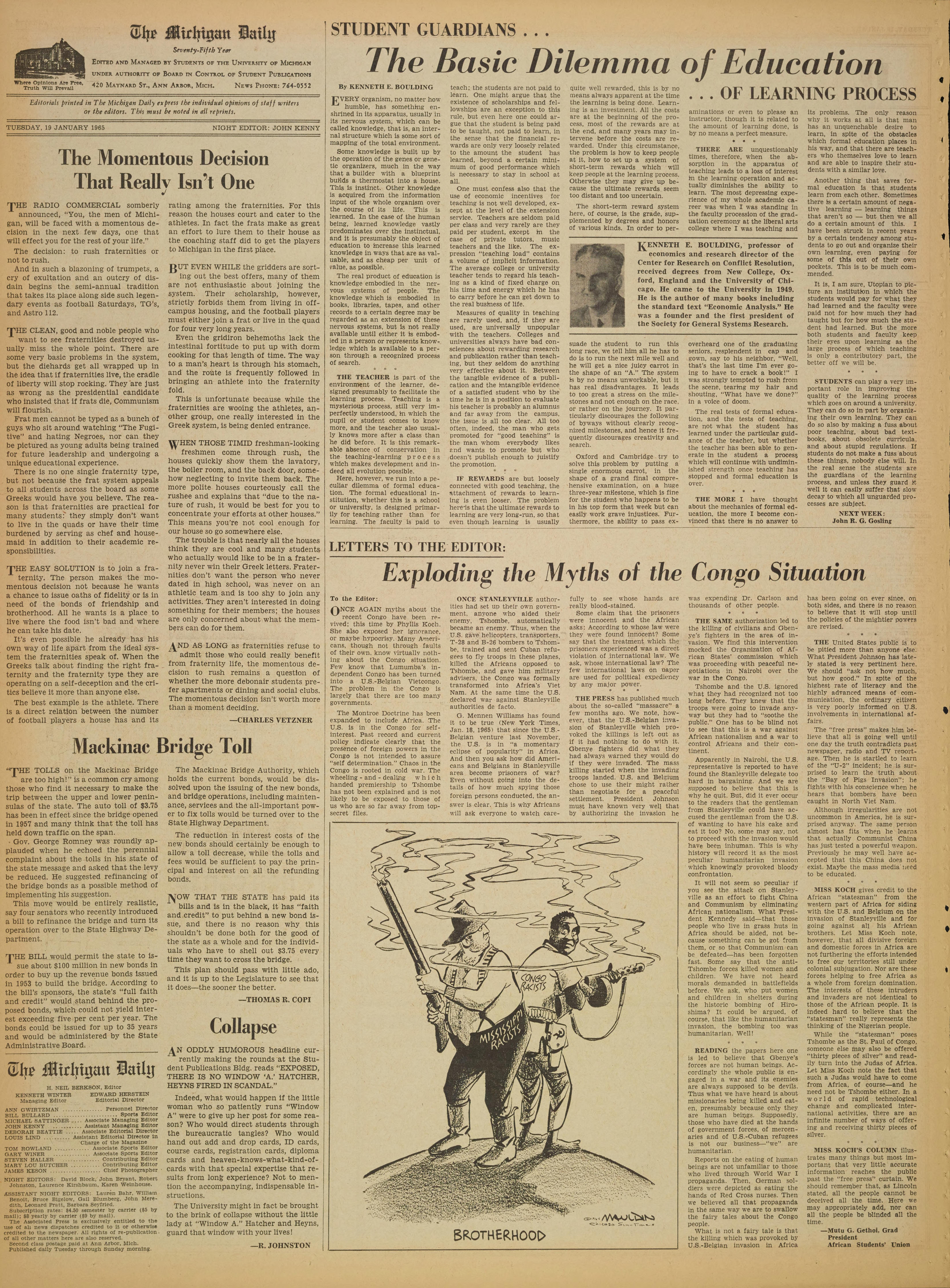 TUESDAY, 19 JANUARY 1965 NIGHT EDITOR: JOHN KENNY