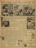igan halfback turns right end for five yards in the first period yesterday. His run carried to Oregon State's 21-yd. line. Four plays later