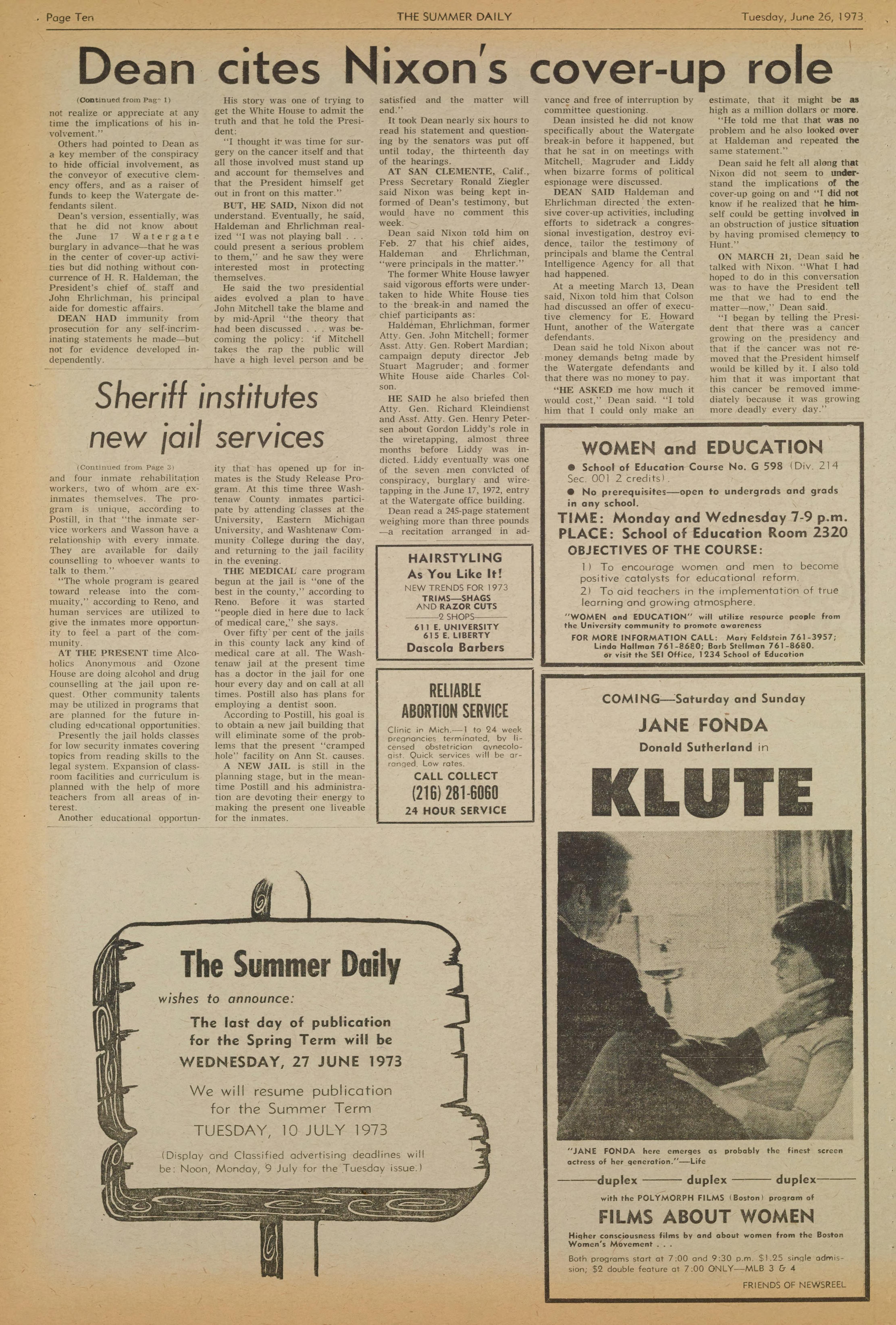 Page Ten THE SUMMER DAILY Tuesday, June 26, 1973