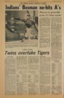 DICK BOSMAN, well-traveled Cleveland Indians pitcher, whips home another high, hard one with a 1-0 record and a 4.54