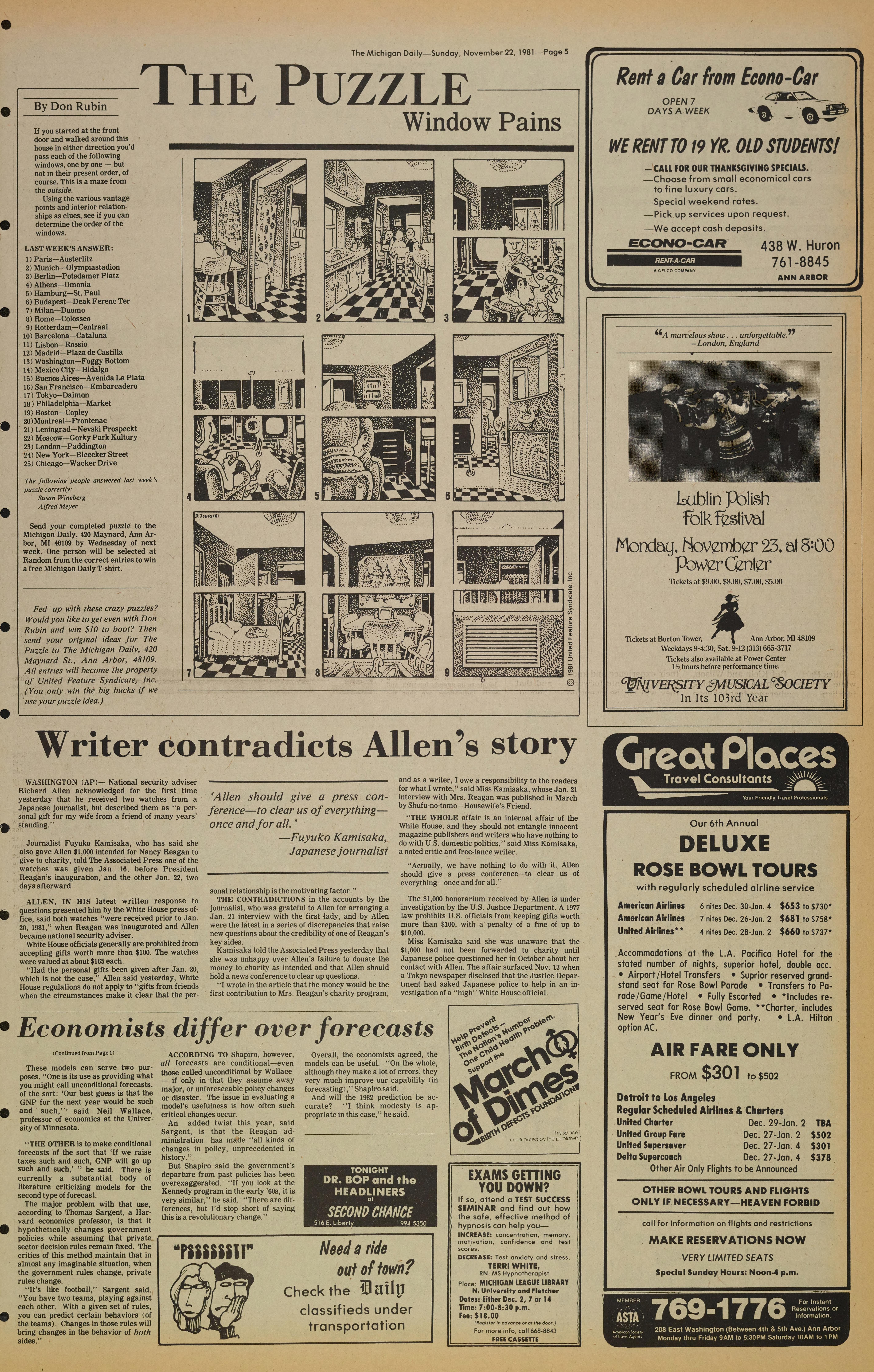The Michigan Daily-Sunday, November 22, 1981-Page 5