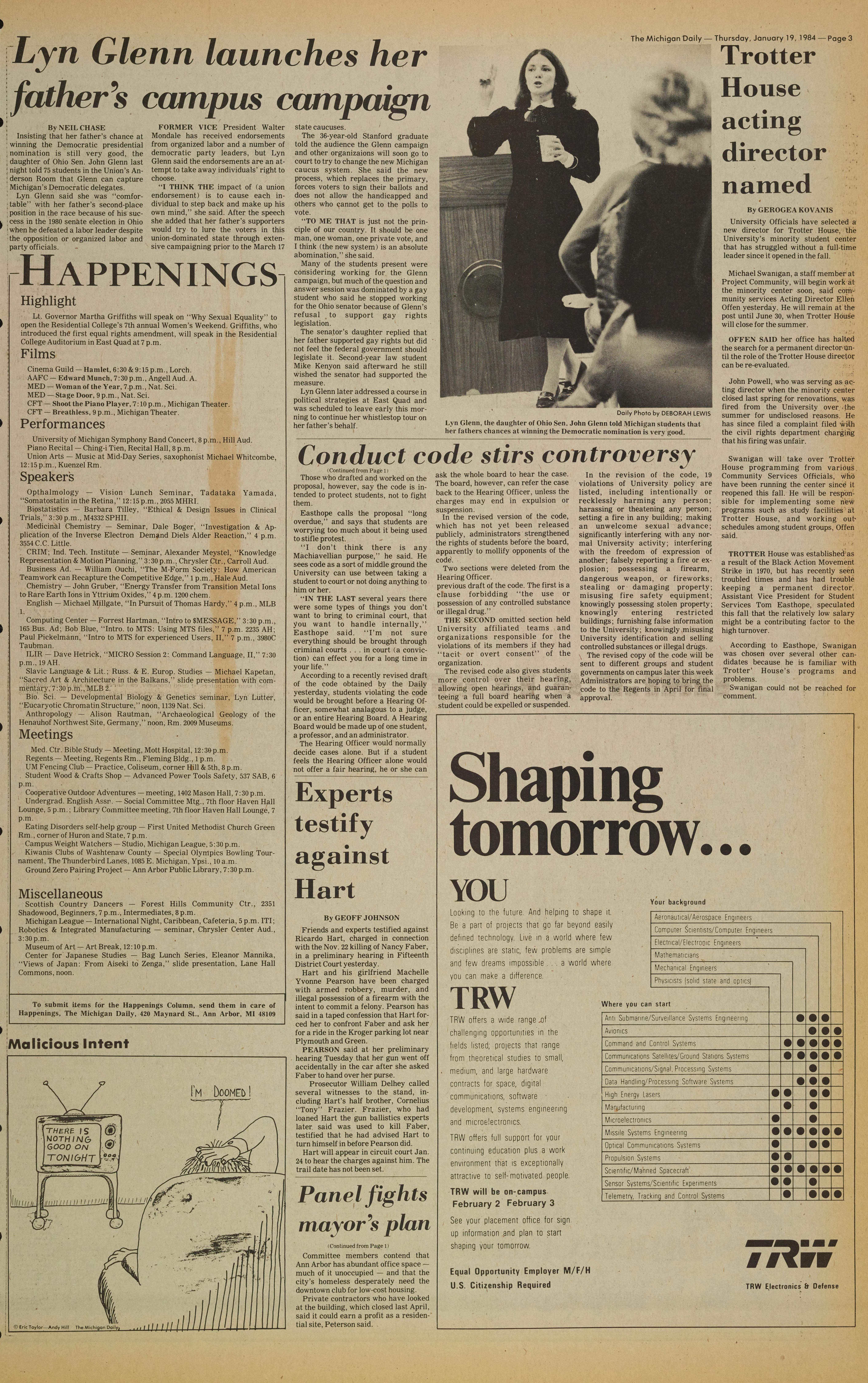 The Michigan Daily - Thursday, January 19, 1984 - Page 3
