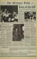 Roy Tarpley and Antoine Joubert celebrate with enthusiastic Michigan fans after yesterday's 57-45 over Illinois. Tar-