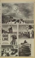 An Ann Arbor policeman keeps a silent watch over the crowd. Wolverine punter Monte Bobbins warms up on the sidelines.