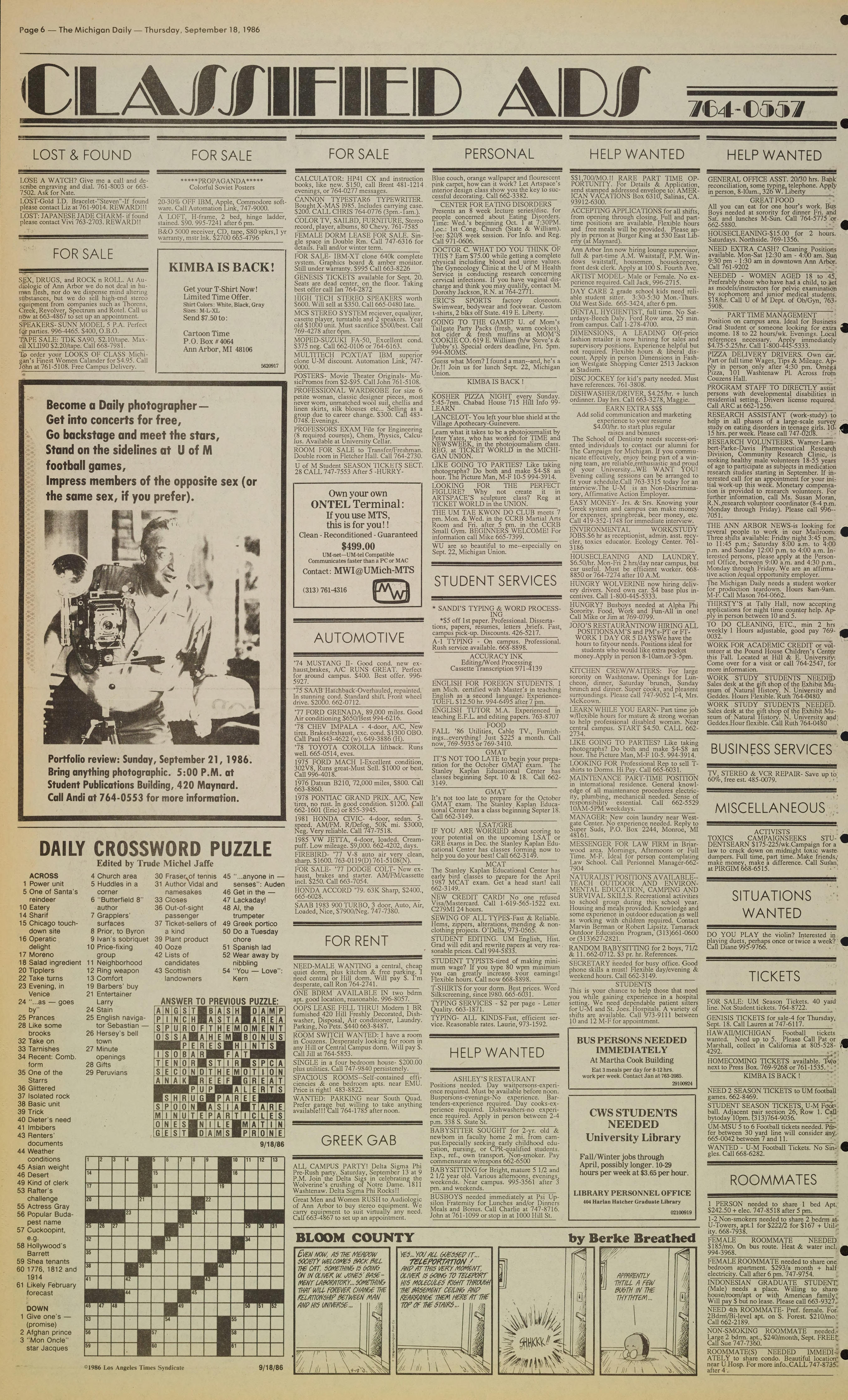 Page 6 - The Michigan Daily - Thursday, September 18, 1986