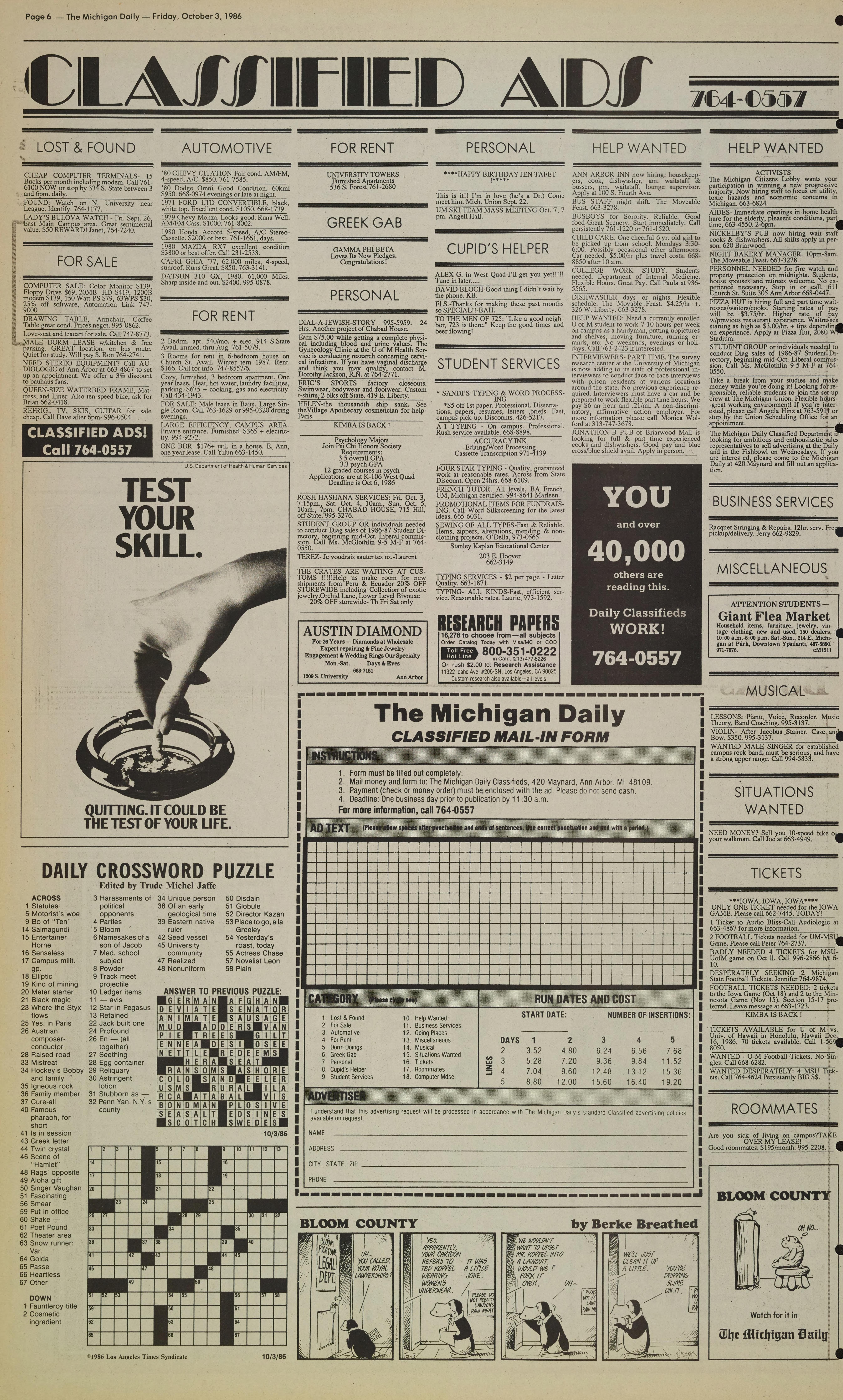 Page 6. - The Michigan Daily - Friday, October 3, 1986