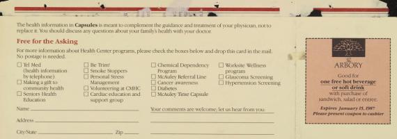 For more information about Health Center programs, please check the boxes below and drop this card in the mail.