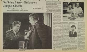 The ever-popular James Dean lashes out at father Raymond Massey in 'East of Eden.' Films such as this are getting harder tofind on campus.