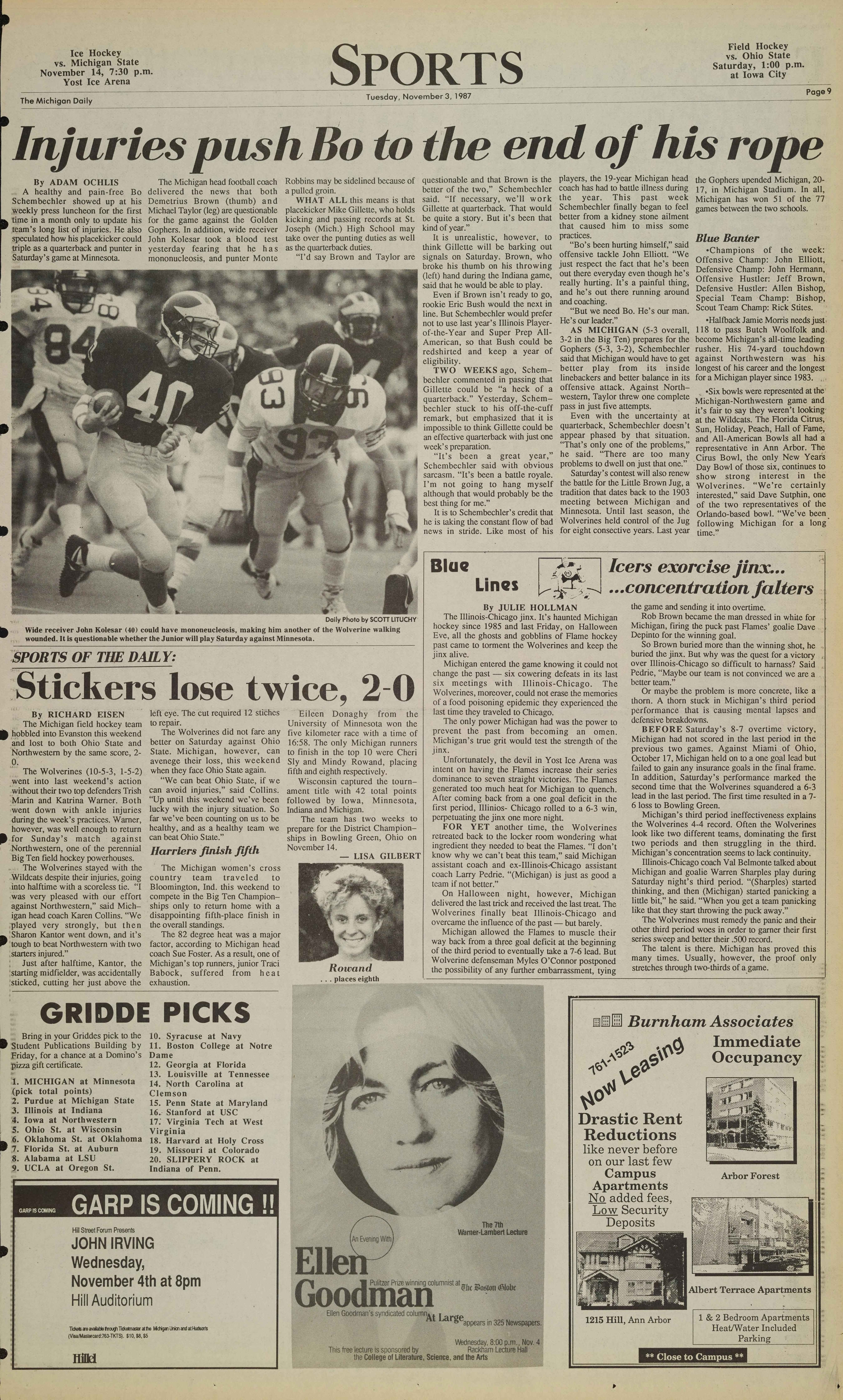 A healthy and pain-free Bo delivered the news that both a pulled groin. better of the two," Schembechler coach has had to battle illness during 17, in Michigan Stadium. In all,