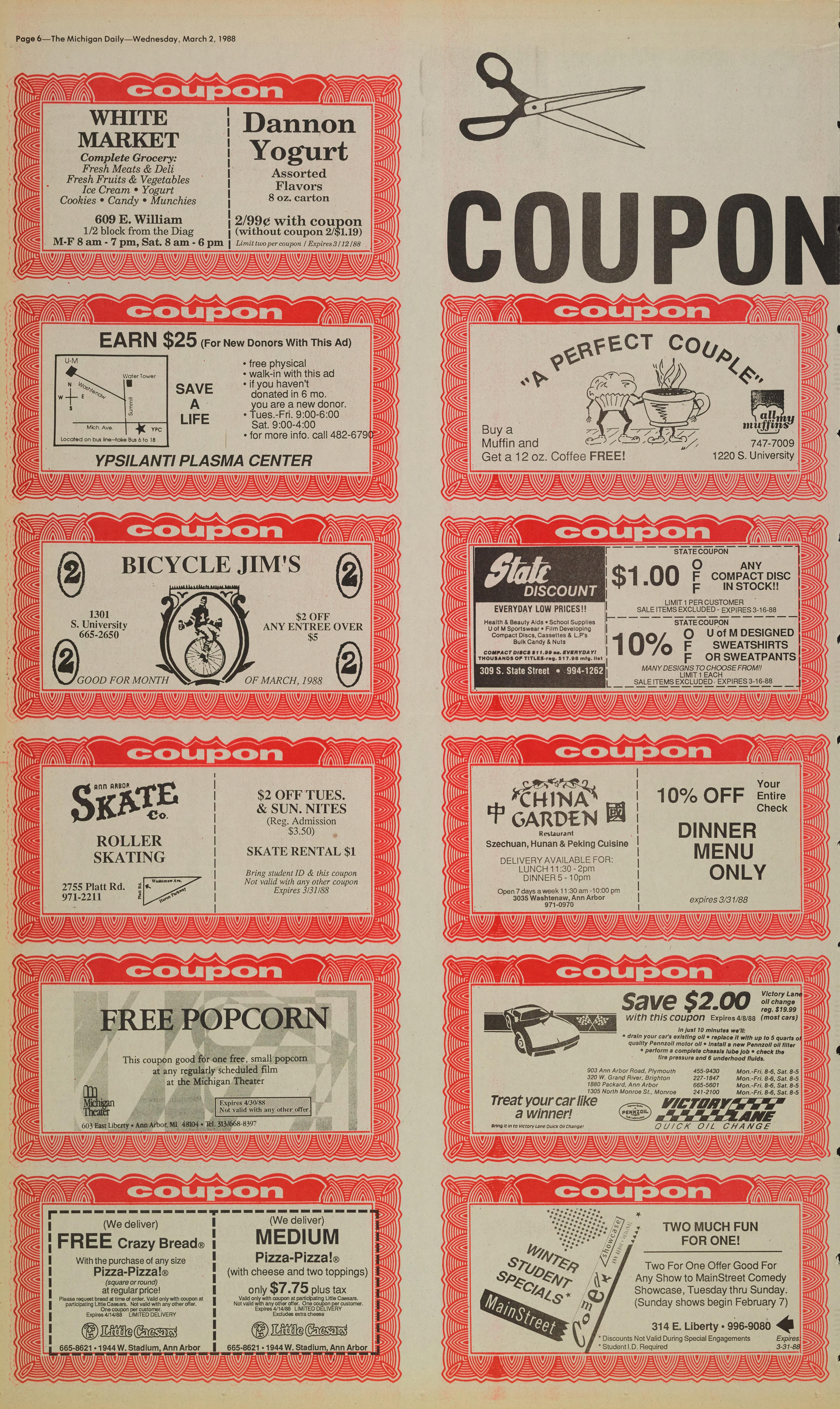 pm, Sat. 8 am - 6 pm , Limit two per coupon / Expires 3/112/88 Ky;