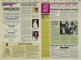 academic transcript, five byline newspaper clips, a