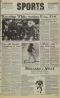 Michigan wide receiver Kevin Owen (#31) stretches a reception into extra yardage at Saturday's spring football game. Linebacker