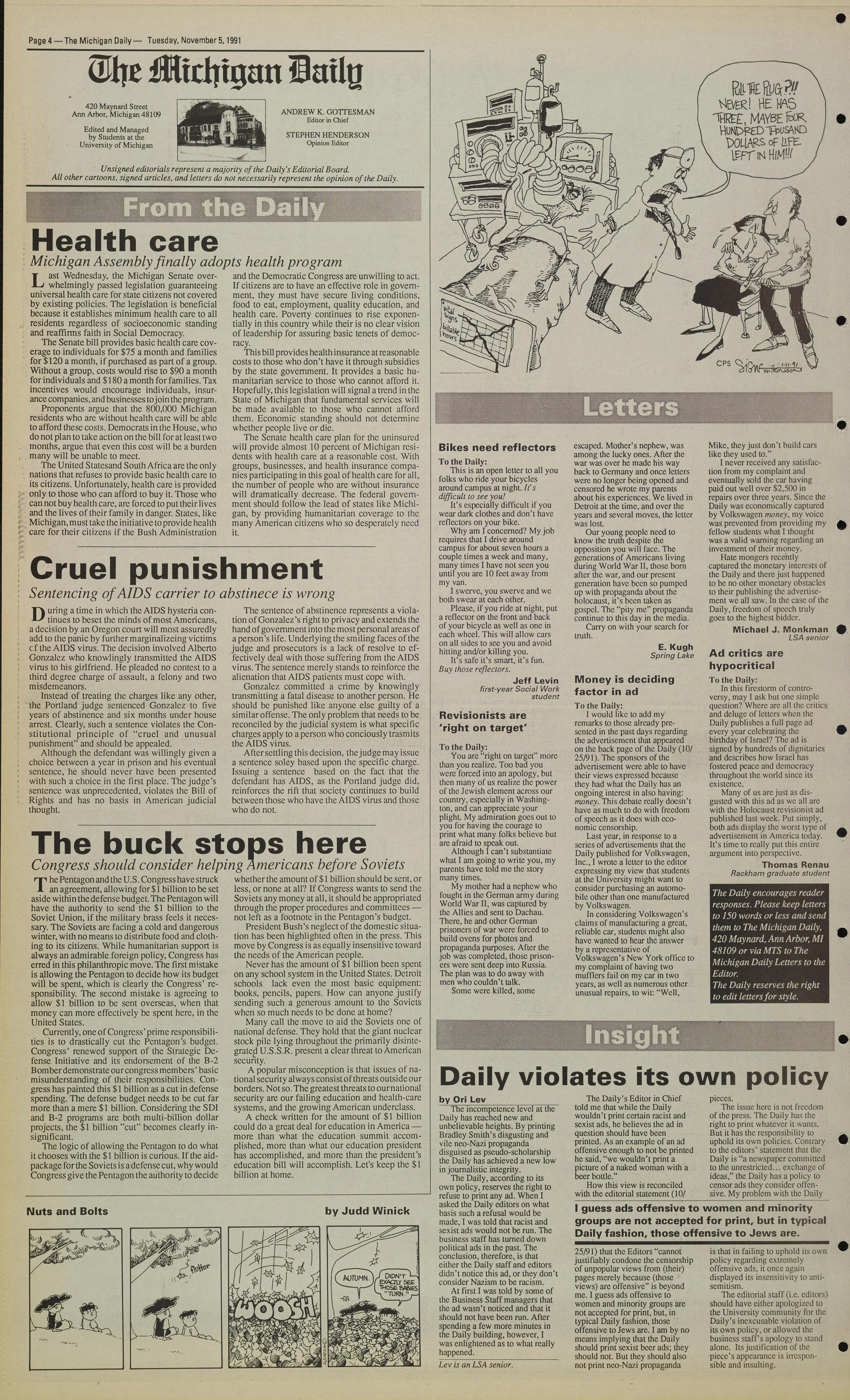 All other cartoons, signed articles, and letters do not necessarily represent the opinion of the Daily.