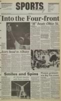 Michigan's Mark Ouimet scrambles in front of the net in yesterday's 7-6 victory over Northern Michigan.