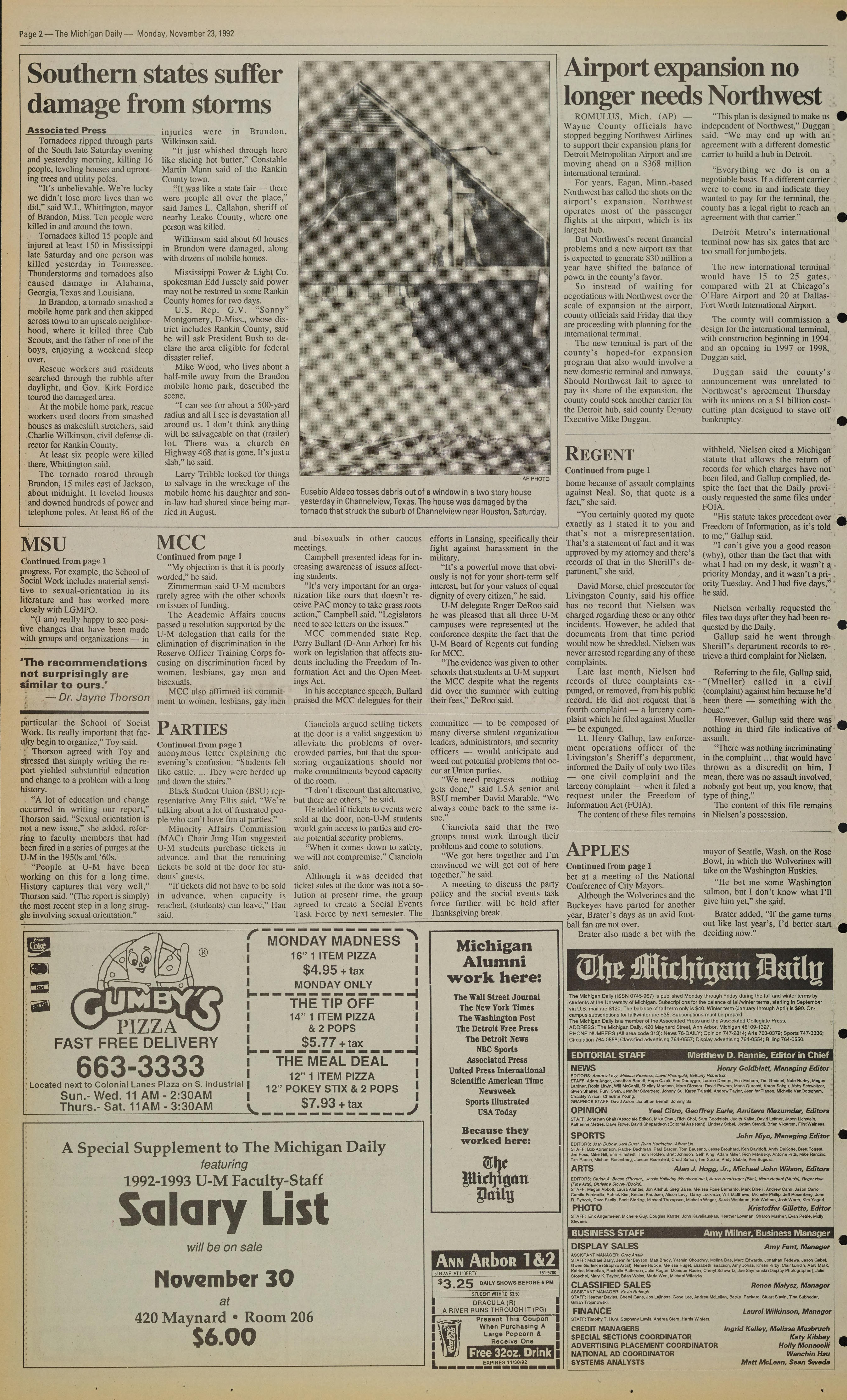 Page 2-The Michigan Daily-- Monday, November 23, 1992