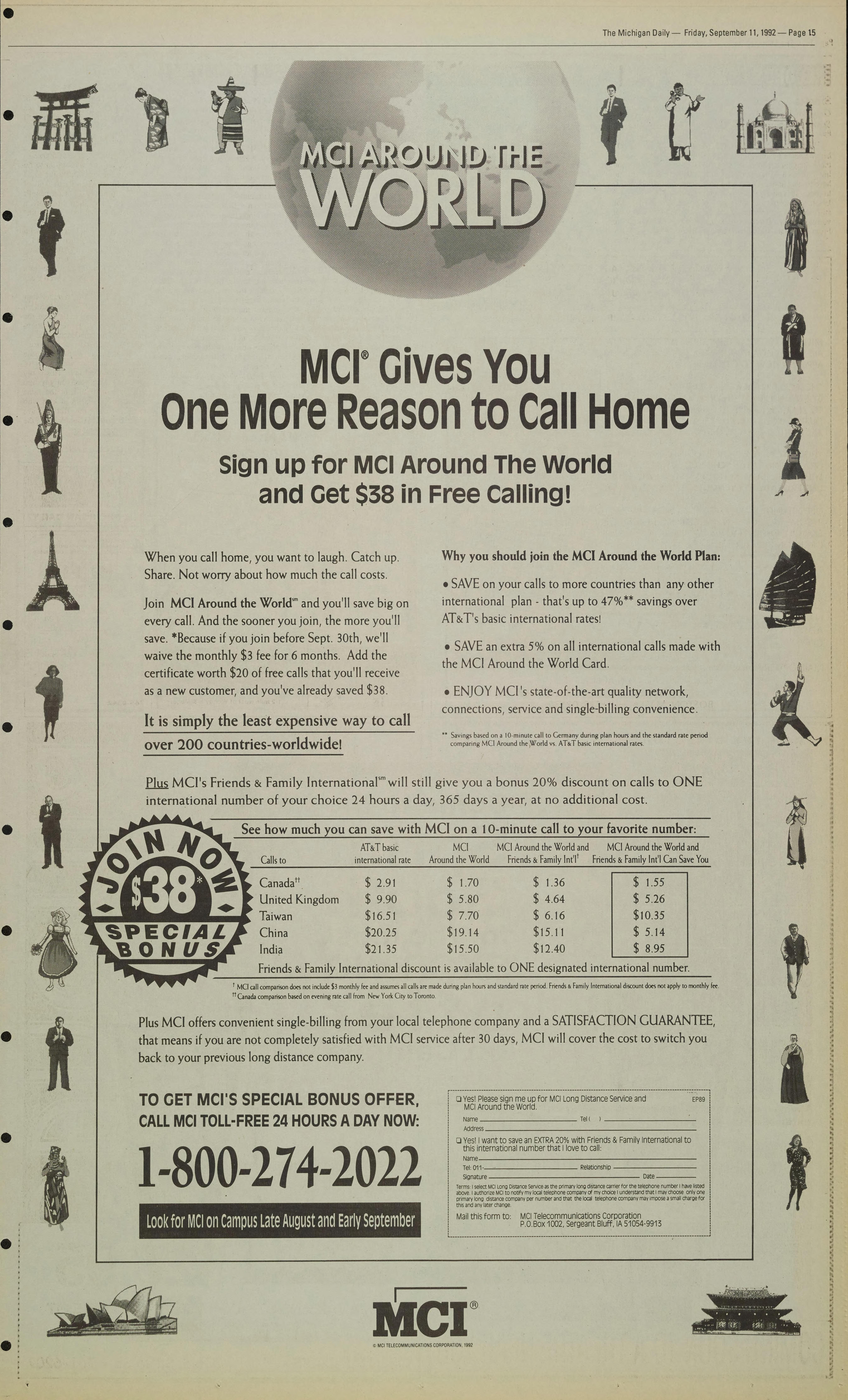 Plus MCI offers convenient single-billing from your local telephone company and a SATISFACTION GUARANTEE,