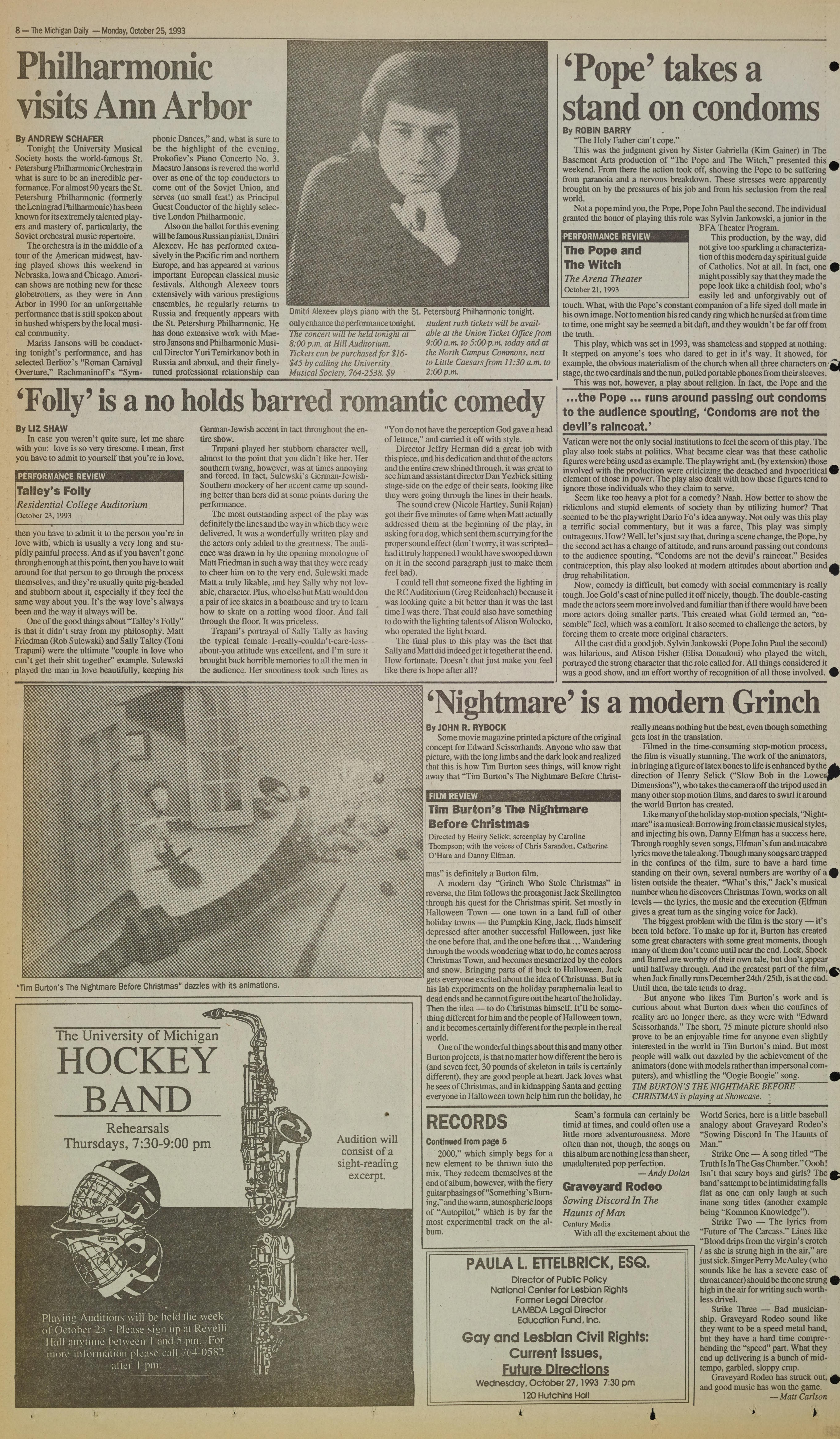8- The Michigan Daily - Monday, October 25, 1993