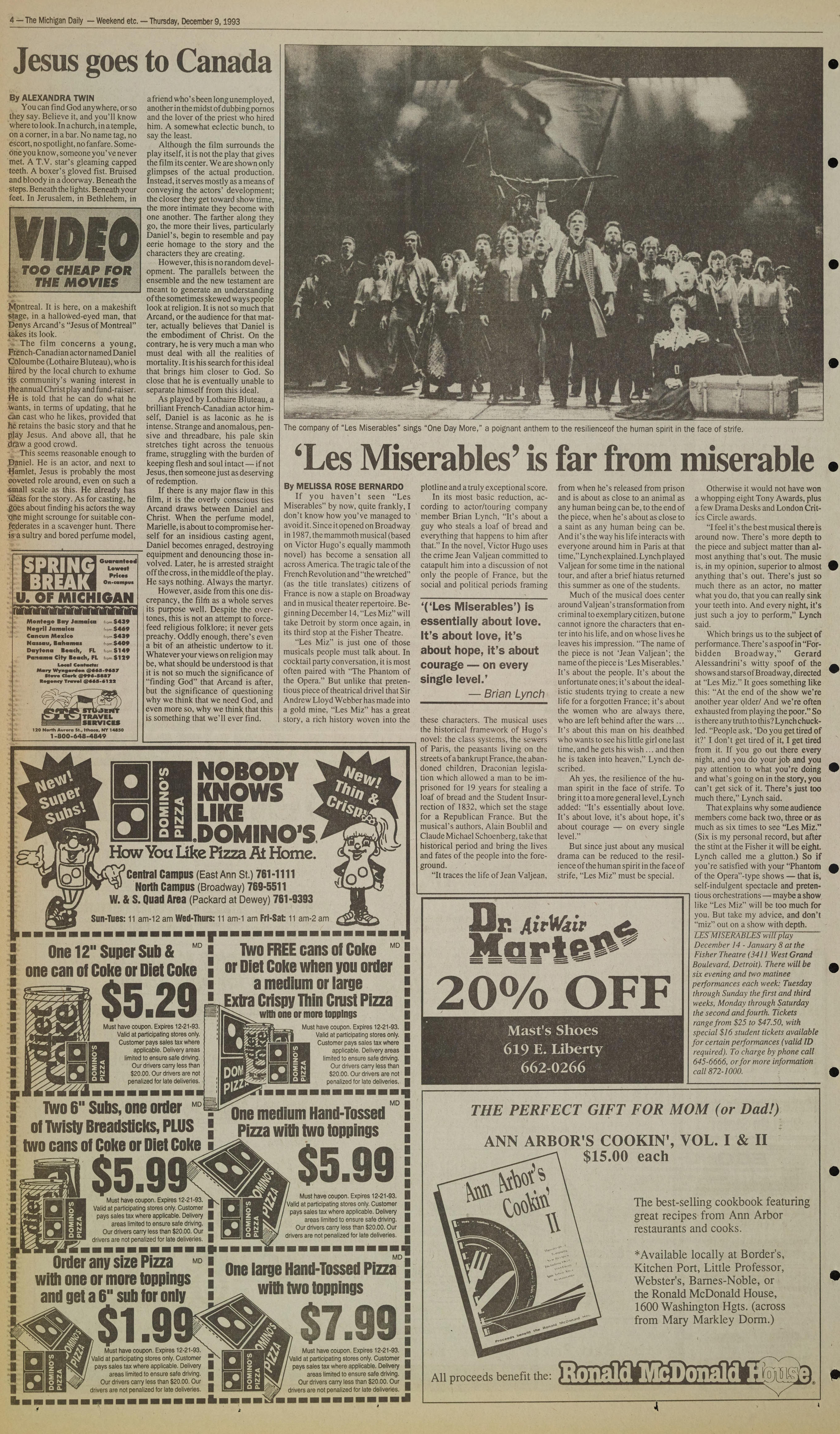 4-The Michigan Daily - Weekend etc. - Thursday, December 9, 1993