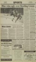 Michigan's Warren Luhning checks Bowling Green's Kelly Perrault during last night's 2-3 Wolverine victory over the Falcons. The Wolverines' offense has
