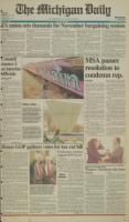 Former MSA President Julie Neenan passes the gavel to LSA junior Flint