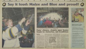 Yost Ice Arena, packed to capacity, cheers the Michigan hockey team to victory over the Bowling Green squad.