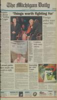 Eric Olmo, a Gateway 2000 representative, sets up a table yesterday at the job