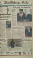 speaks to students gathered for the National Young Women's Day of Action on Angell Hall's steps yesterday.