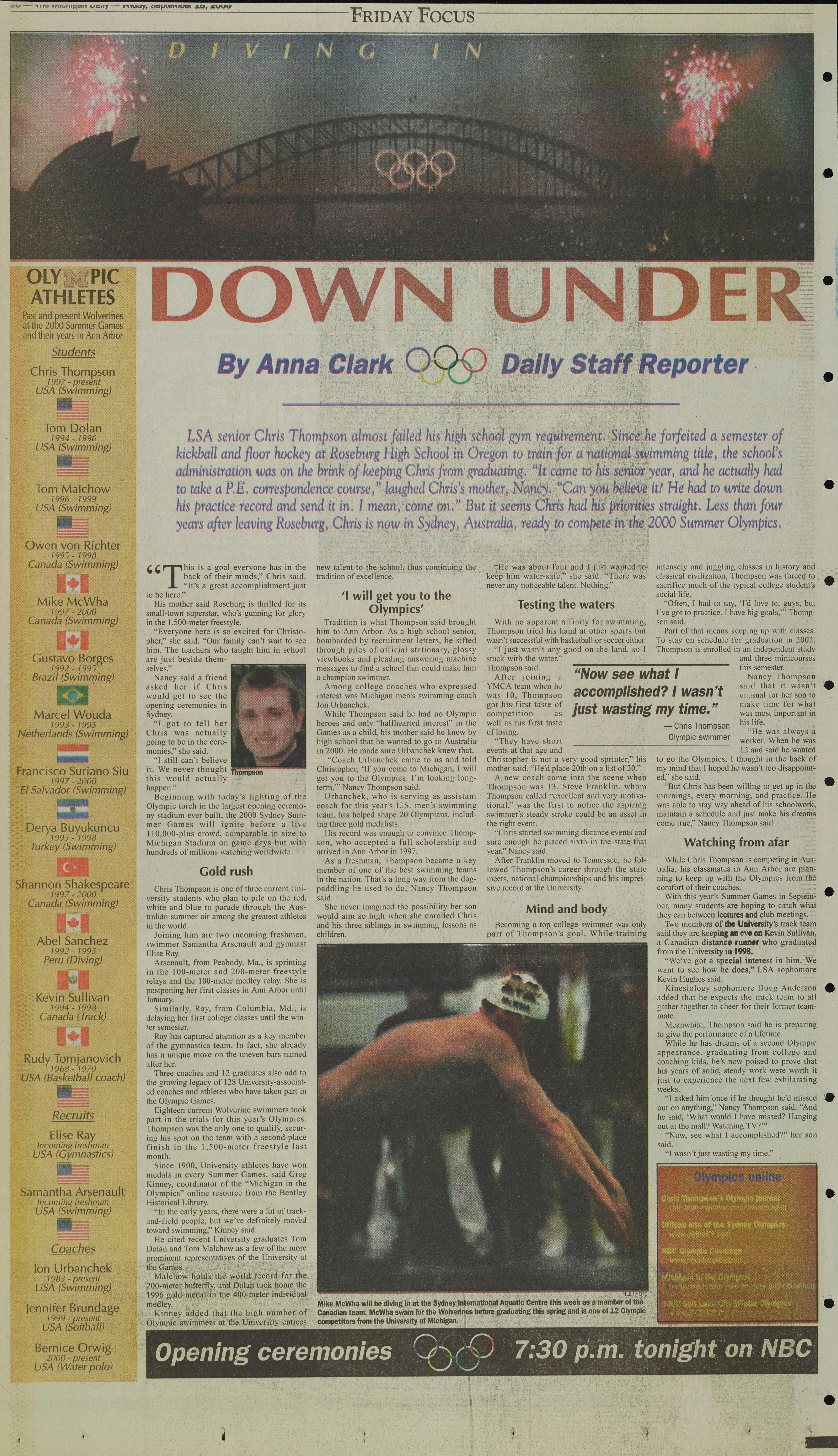 years after leaving Roseburg, Chris is now in Sydney, Australia, ready to compete in the 2000 Summer Olympics,