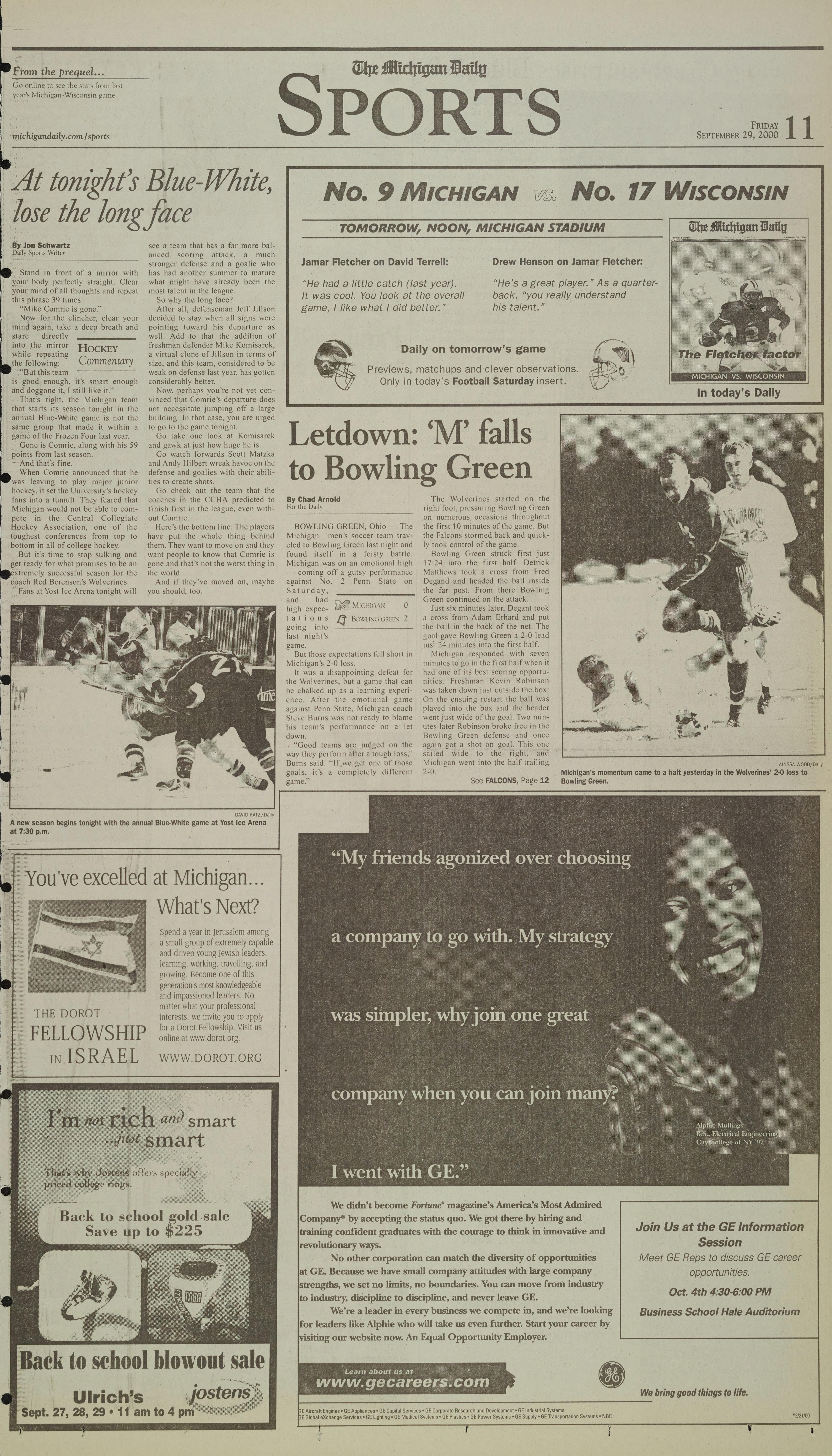 Michigan's momentum came to a halt yesterday in the Wolverines' 2-0 loss to