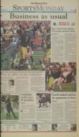 E: David Terrell shows star cornerback Jamar Fletcher (2) his skills by out jumping him, another Badger and teammate Ronald Bellamy