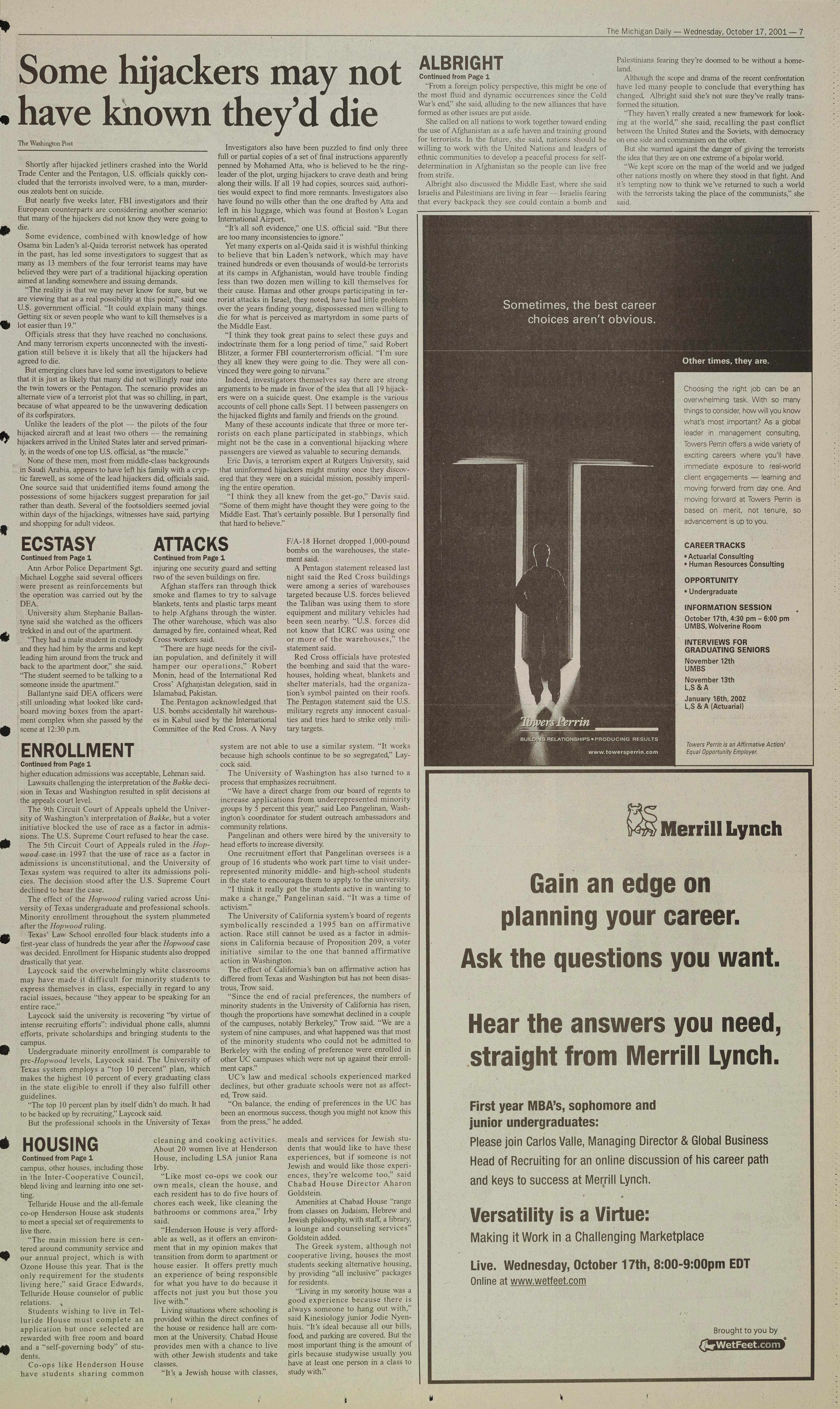 The Michigan Daily - Wednesday, October 17, 2001 - 7