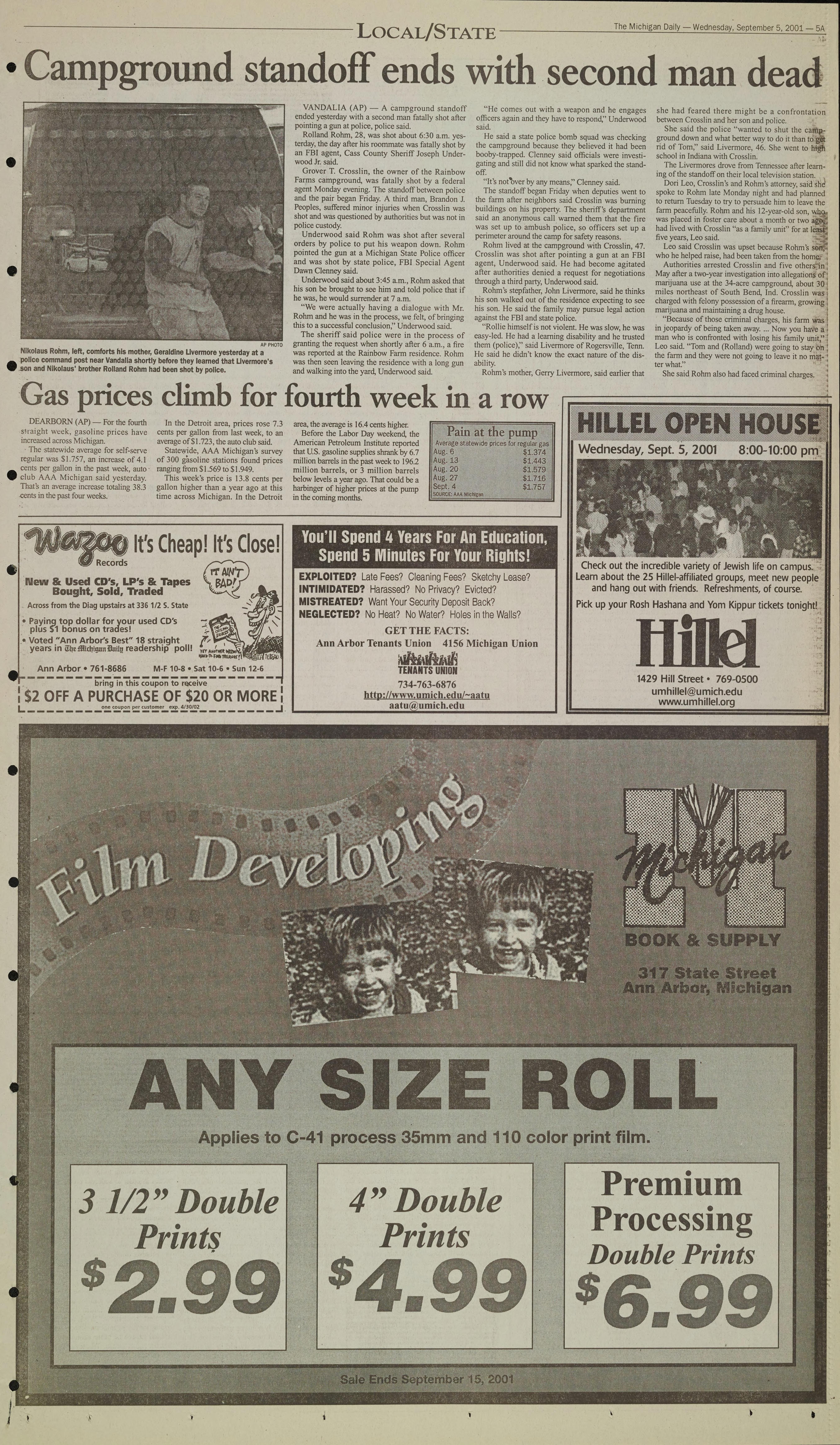 The Michigan Daily - Wednesday, September 5, 2001 -A