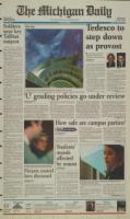 LSA sophomore Lauren Leyser sits under an umbrella yesterday. Many students report