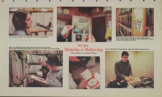 Below center: Jacob Richardson inspects a new arrival at the weekly music review meeting.