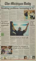 LSA sophomore Chris Perry tries on a pair of beer goggles, which simulate a