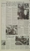 Michigan's Chris Perry carries Florida's Guss Scott, as he did with many other Gators en route to neariy 200 all-purpose yards.