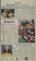 Senior running back Chris Perry hurdles two Central Michigan players on his way to an 11-yard gain in the third quarter