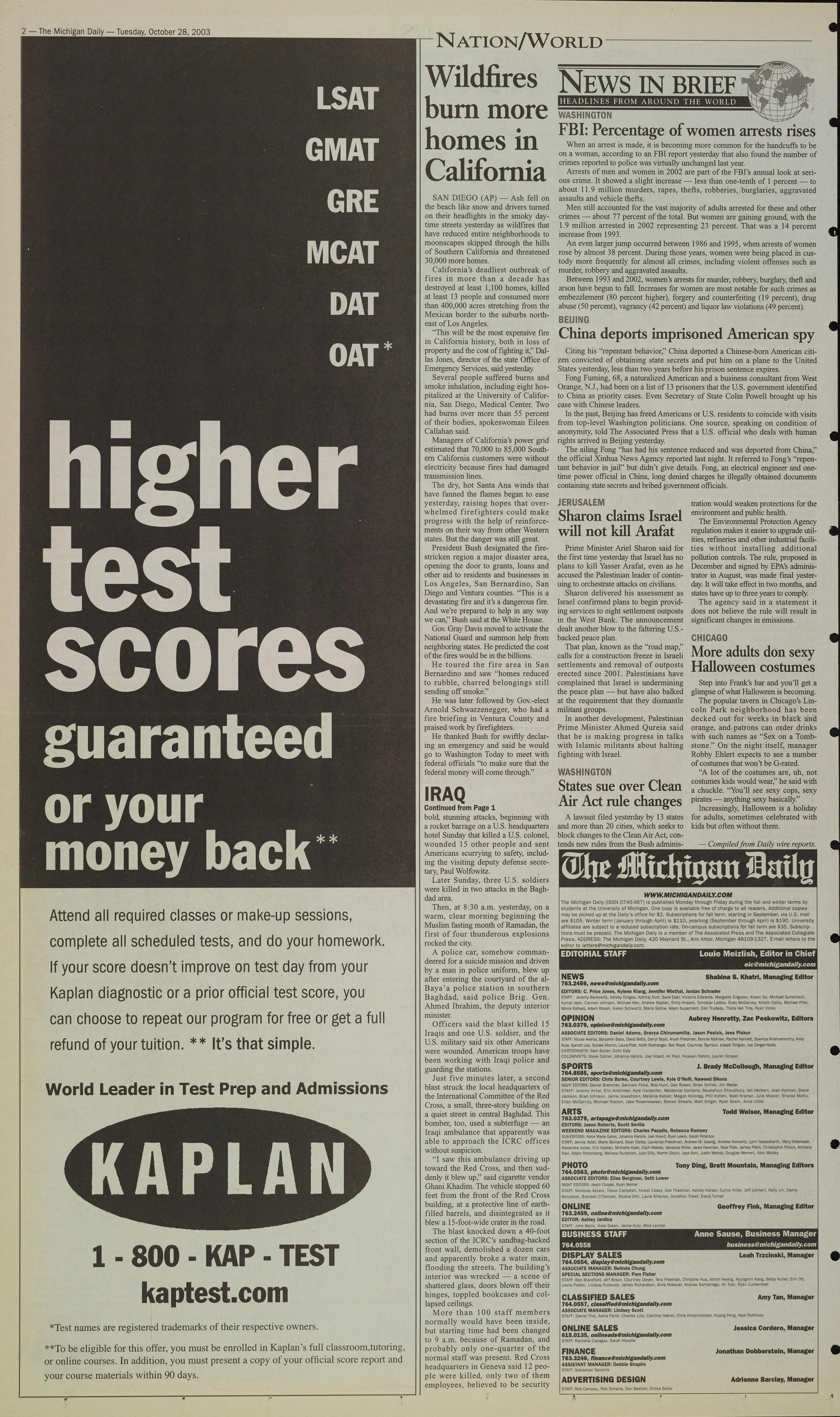 Press. ADDRESS: The Michigan Daily, 420 Maynard St., Ann Arbor, Michigan 48109-1327. E-mail letters to the