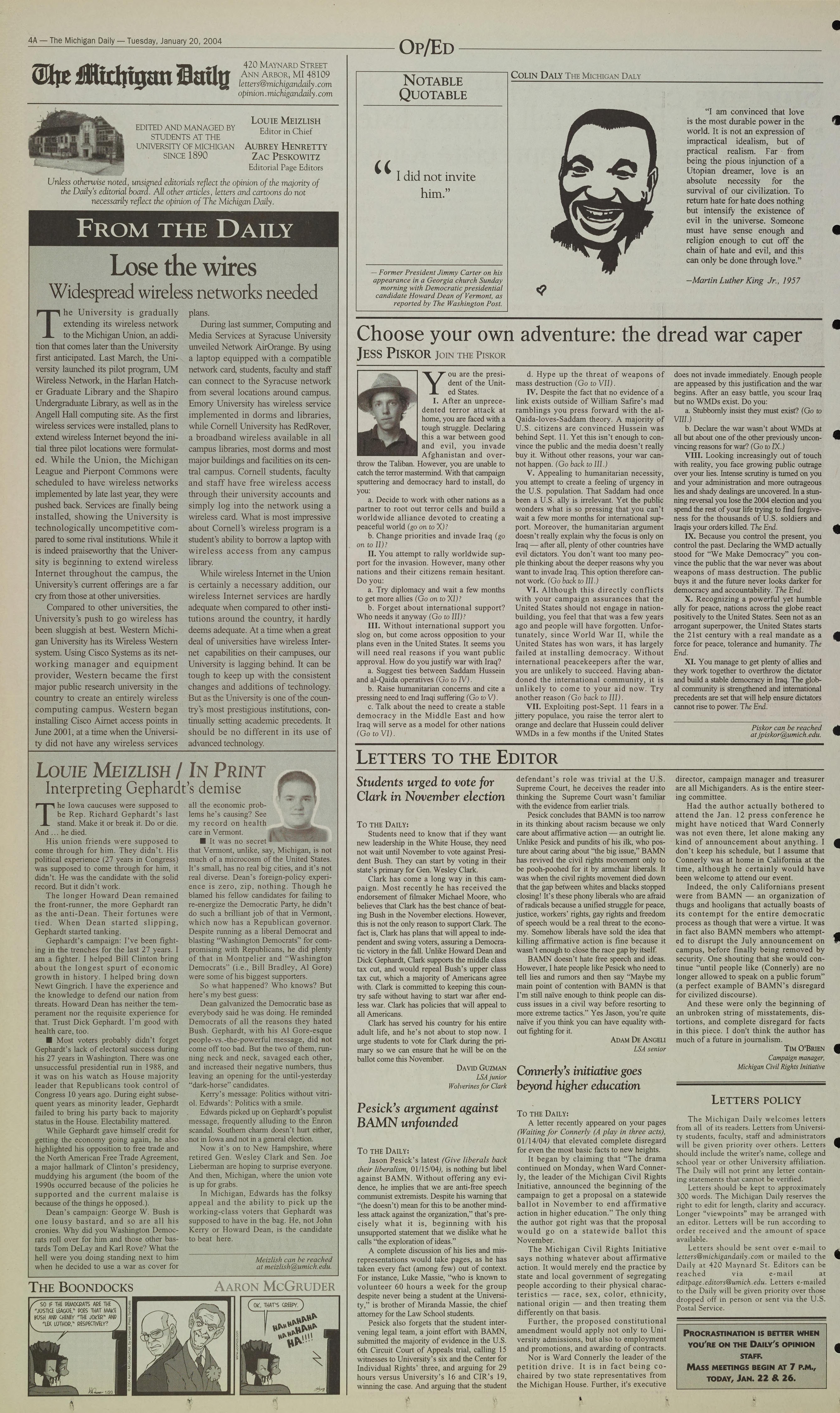 4A - The Michigan Daily - Tuesday, January 20, 2004
