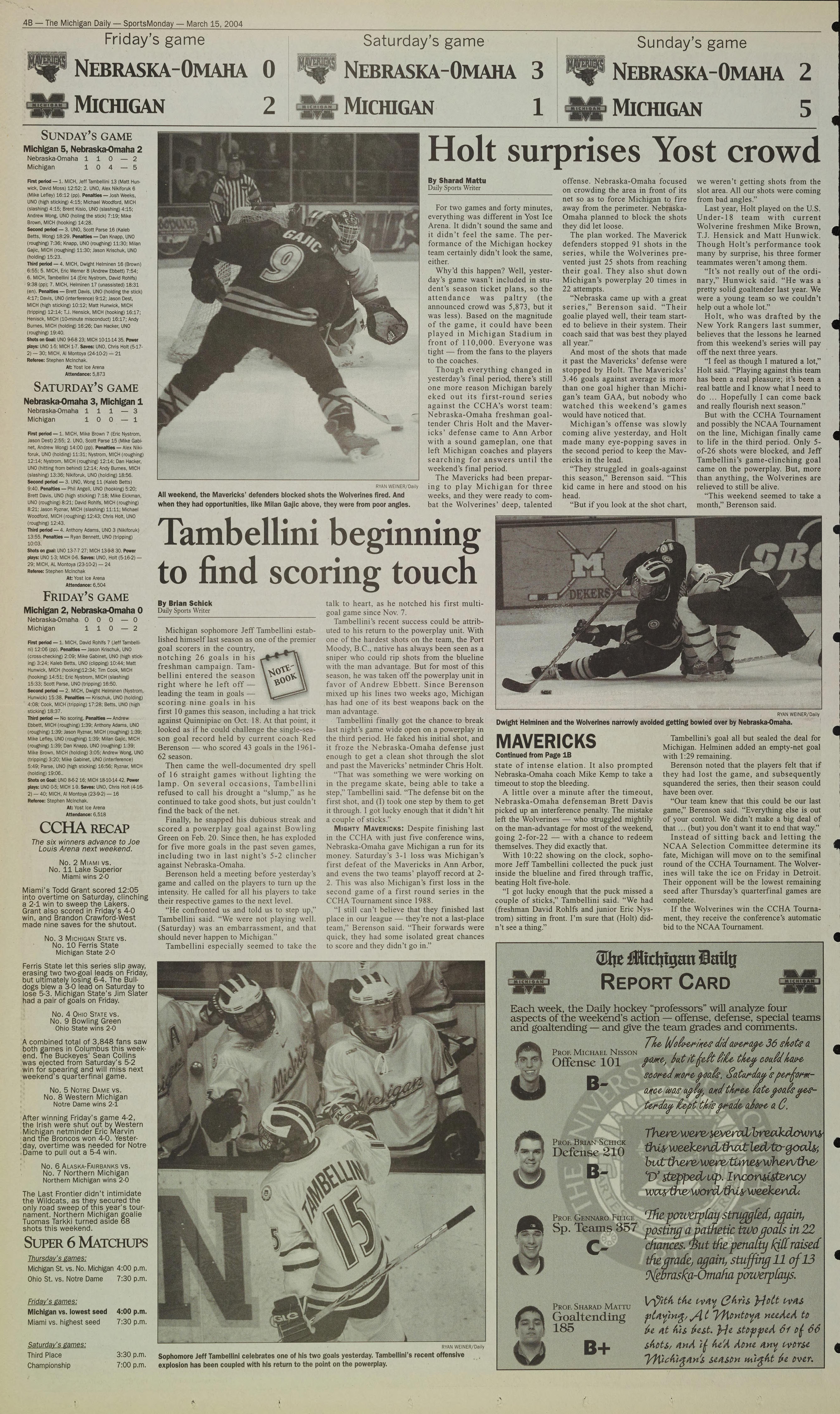 plays: UNO 0-5; MICH 19. Saves: UNO, Chris Holt (4-16-